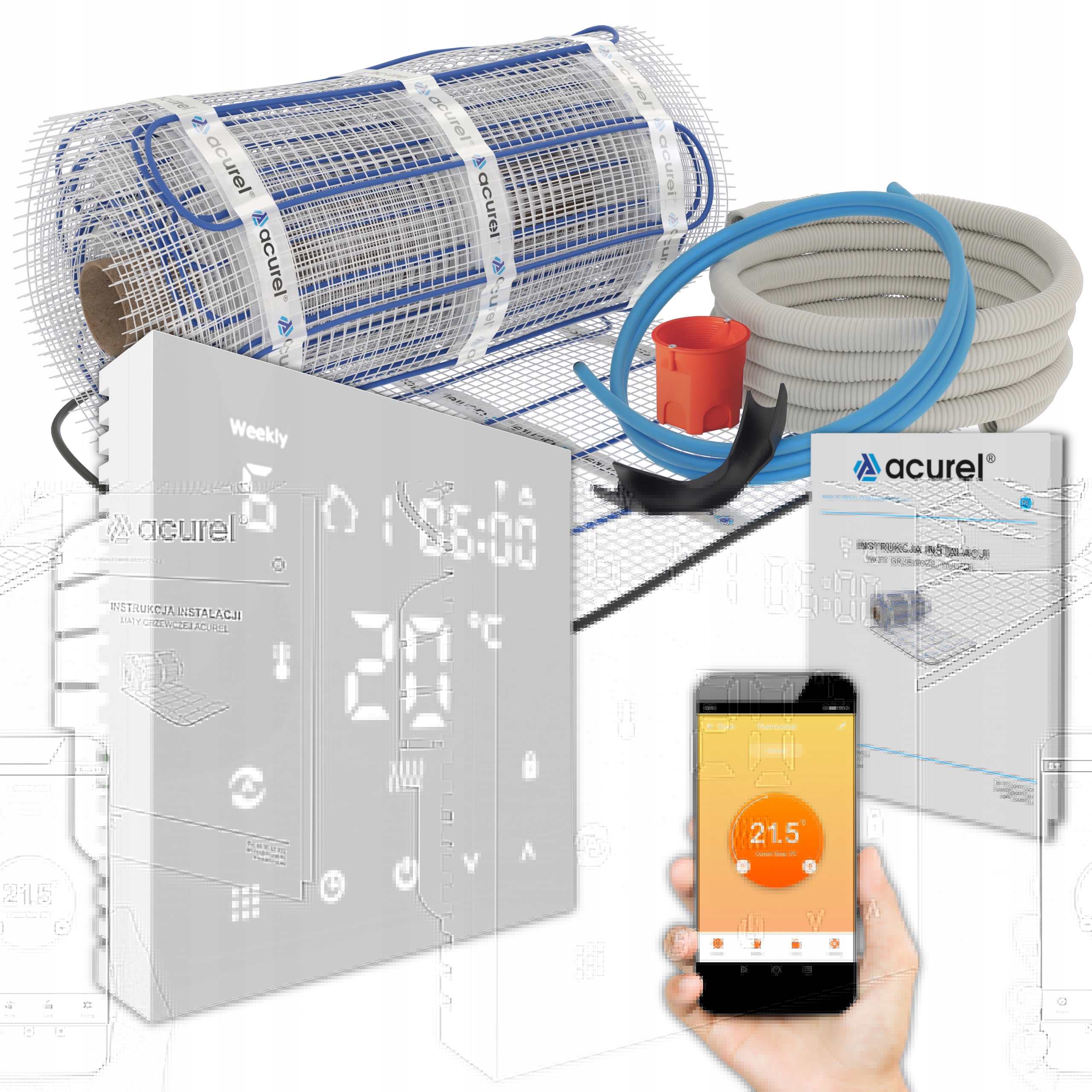 нагрівальні килимки ACUREL® ідеально підходять як нагрівання поверхні в системах підлоги для плитки, плитки, теракоти або gres. Для монтажу плитки слід використовувати гнучкий клей або самостійне міномет, присвячений цьому типу нагріву. У випадку встановлення нагрівання в приміщенні з підвищеною вологістю, наприклад, у ванній кімнаті слід використовувати додаткову вологу.