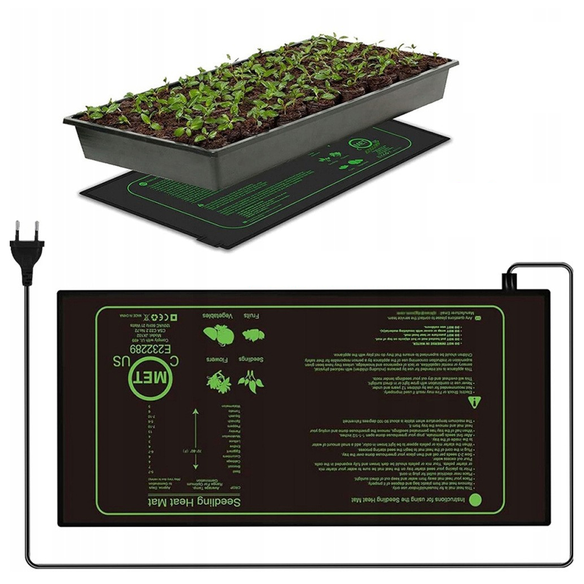 🌱【Сумісний із більшістю нагрівальних килимків для розсади】Розмір цього нагрівального килимка для розсади становить прибл. 25 x 52,5 см / 10 x 20,75 дюймів зі шнуром живлення 145 см, підходить для звичайного пророщування рослин і підтримує помірну температуру для рослин у холодну зиму. 21 Вт, змінний струм 220~230 В/50 Гц. Сертифіковано CE/UKCA/UL/FCC. Нагрівачі для рослин є малопотужними та не мають сильного ефекту випаровування. 【Міцний і водонепроникний】 Виготовлений з міцного ПВХ матеріалу, який є стійким до корозії, міцним і довговічним. Беручи до уваги вплив поливу рослин, килимок також є водонепроникним і простим у використанні. Просто покладіть килимок на відповідну поверхню, щоб помістити на нього теплицю. Ось і все - тепер ми правильно піклуємося про ваші рослини!