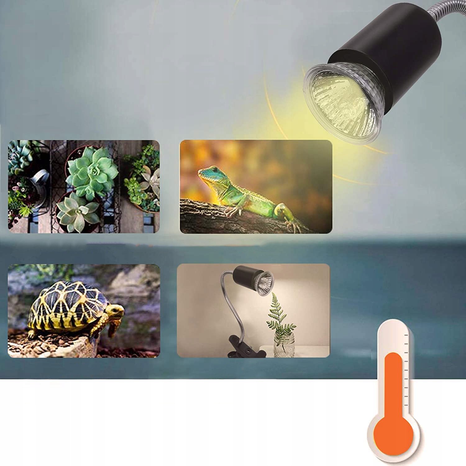 😉 лампочки заміни: забезпечує два лампочки E27 25W та 50 Вт, які мають UVA/B, які імітують сонячне світло. Керамічна розетка, яка може протистояти високому вогні. Підходить для цибулин, флуоресцентних світильників, ультрафіолетових лампочок та керамічних випромінювань тепла. і направлений у улюбленому місці для нагрівання тварини. Відрегулюйте біологічний годинник через яскравість і температуру.