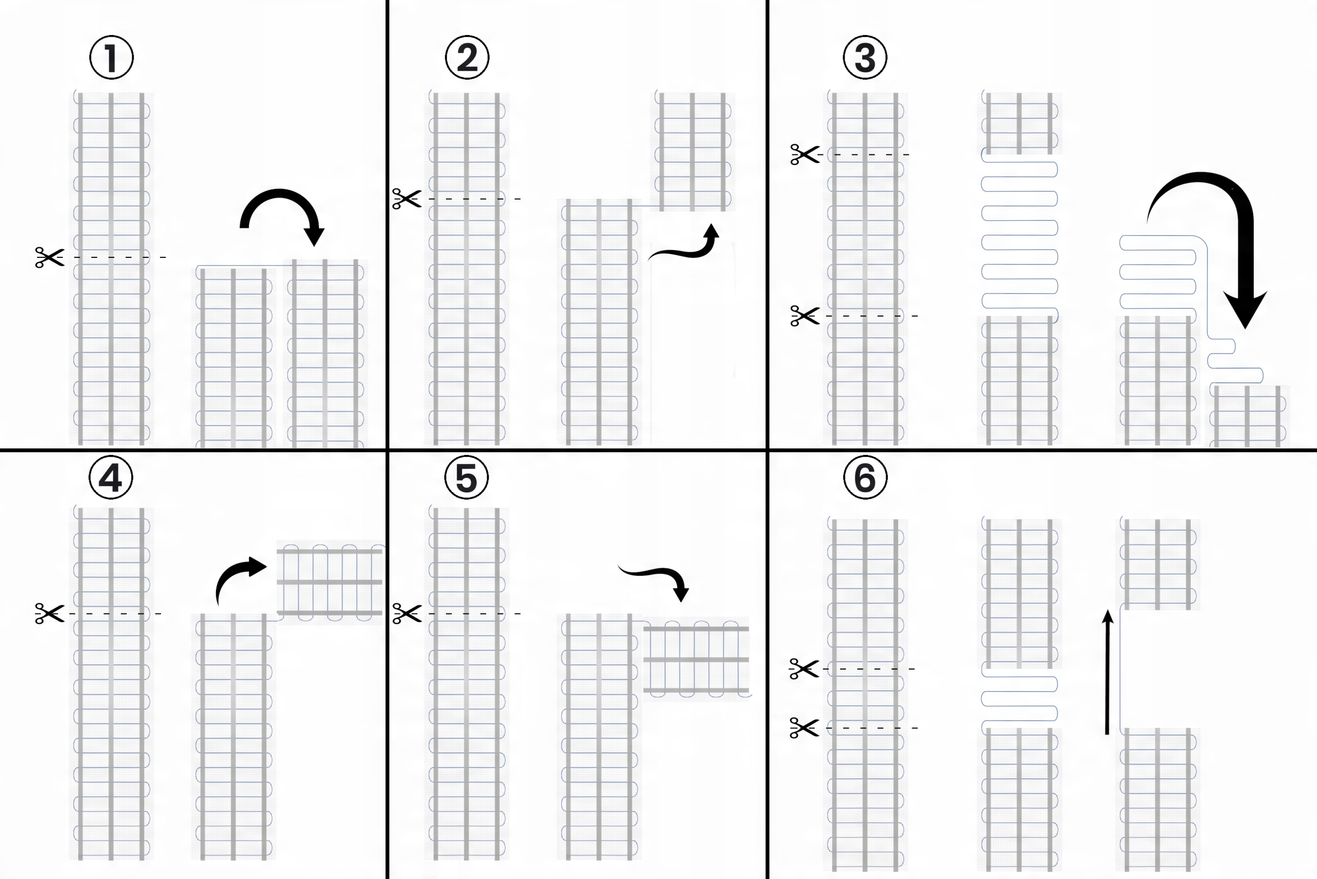 - Ми не розрізаємо нагрівальний мат, лише сітку і приєднаний до нього кабель зігніть нагрівальний дріт відповідно до інструкцій.