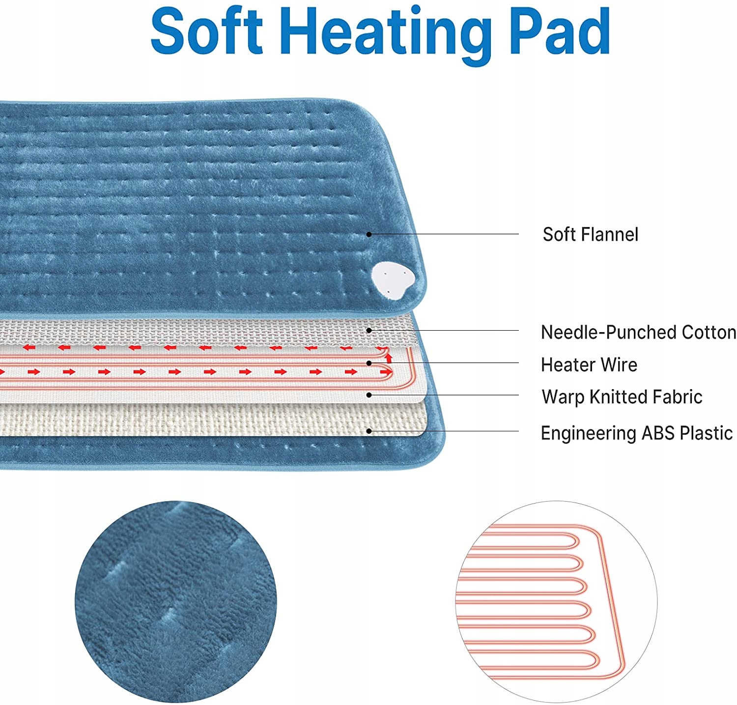 м'який і непакований: поверхня нагрівальної накладки була розроблена з фланелем, яка є м'якою і шкірною. Побудований дріт та трикотажний одяг проводять інтенсивну теплопровідність, яка може швидко зігрітися та забезпечити тепло. Нагрівальна прокладка натиснута на ультразвукове дослідження, позиціонування 8 балів, непроста для деформації.
