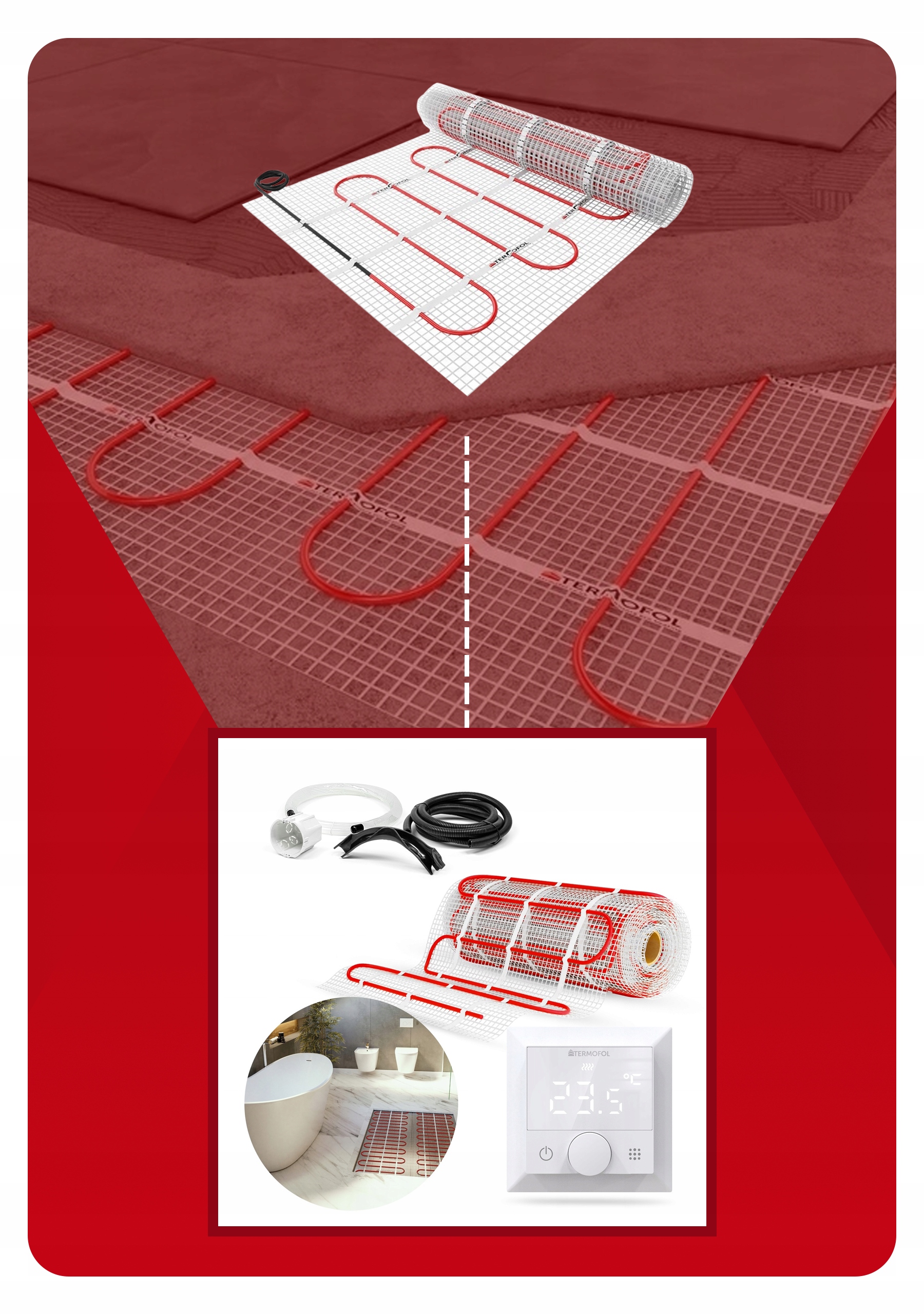 ➡ килимок для підлоги нагрівання складається з системи кабелів, закладеної на спеціальній скляній сітці. Його установка не збільшує рівень підлоги, забезпечуючи приємне відчуття теплої підлоги , що ще більше збільшить комфорт використання будь -якого інтер'єру.
