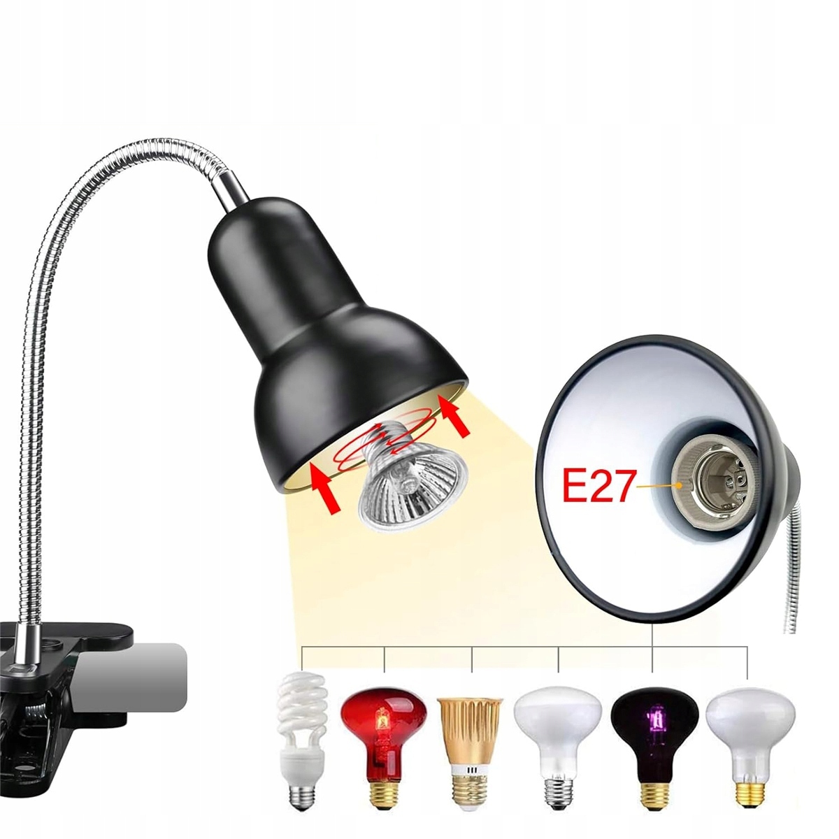 🧡 Конструкція затискача: повністю регульовану голову можна обертати на 360 градусів у будь-якому напрямку. Він має затискач, за допомогою якого його можна прикріпити до бака. Дуже рекомендується для рептилій, амфібій, черепах, птахів, їжаків, геконів, черепах, ящірок, жаб, павуків, хамелеонів, змій, акваріумів і трохи більше тепла.