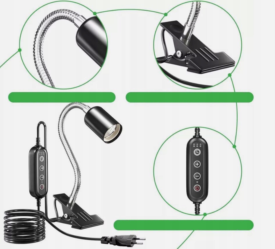 Стандартний цоколь E27, підходить для всіх стандартних лампочок E27, використовується для різноманітних рептилій і земноводних, включаючи черепах, папуг, змій, жаб тощо.