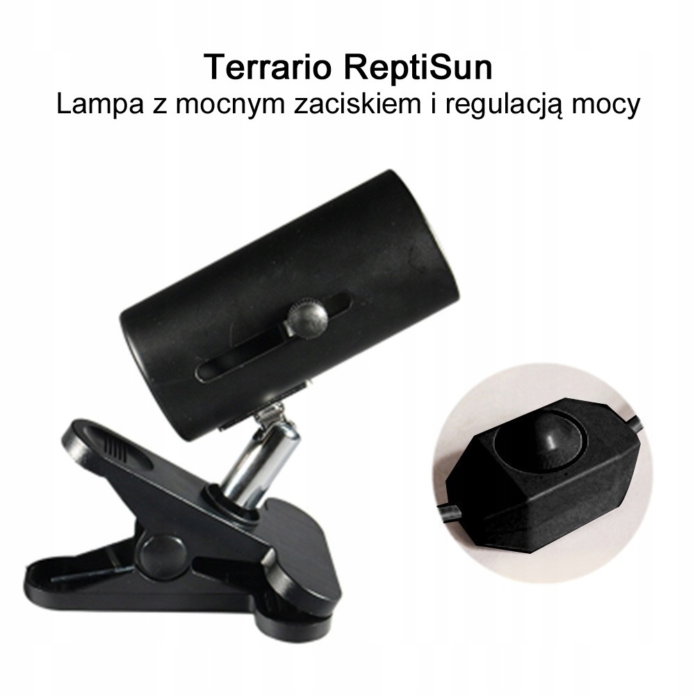Лампа ReptiSun — це повна лампа, адаптована для використання в тераріумах при дуже високих температурах. Підтримує лампи потужністю до 200 Вт завдяки керамічному цоколю зі стандартною різьбою E27. Світильник має міцний фіксатор, що дозволяє підвісити комплект, і кронштейн з шарніром, що дозволяє направляти світло в будь-якому напрямку. На кабелі є регулятор напруги.