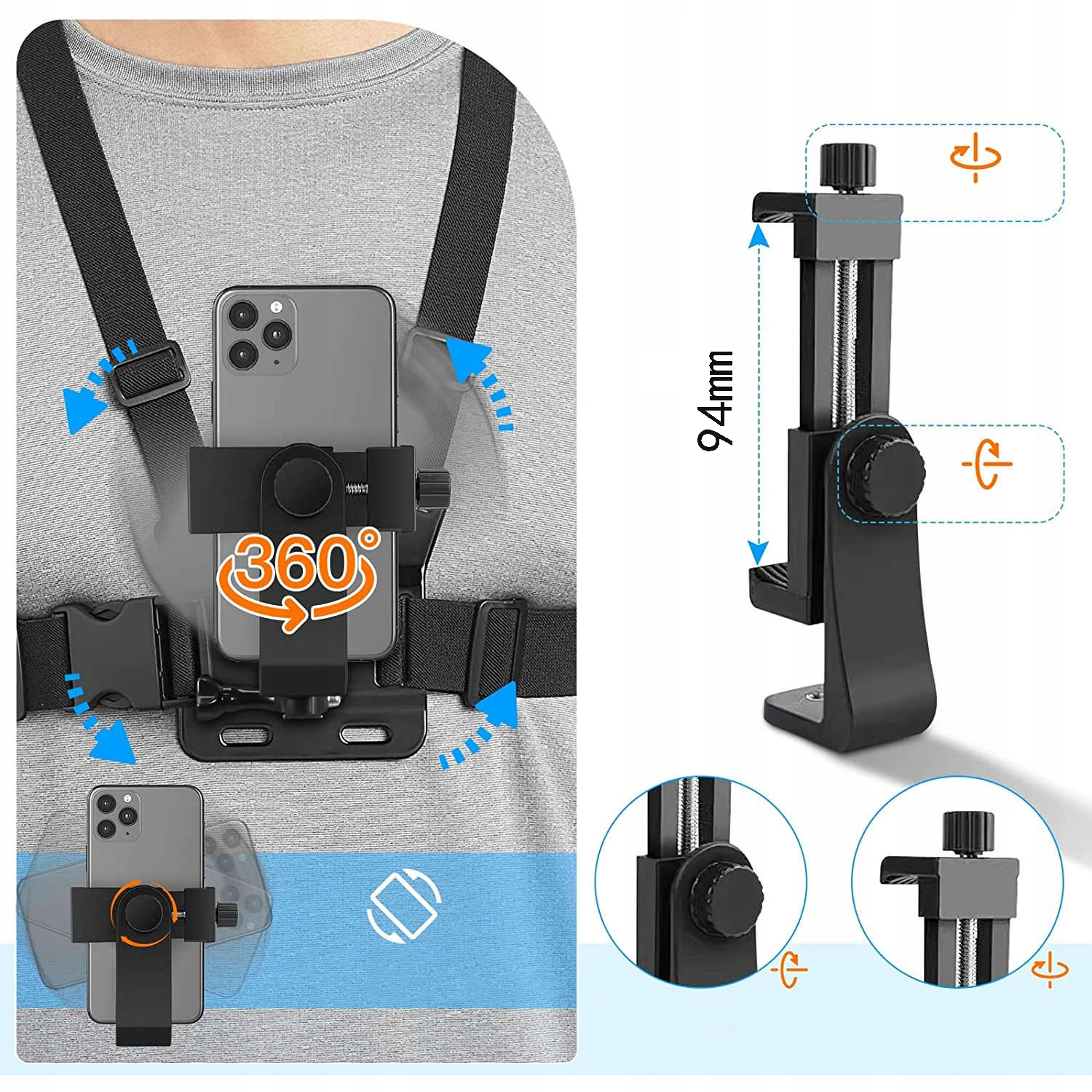✅【Ідеальний вибір для POV/VLOG】Телефон можна розташувати горизонтально та вертикально. Конструкція з J-подібним гачком, а довгий гвинт дозволяє повернути телефон на 90°. Розмір цього ремінця легко регулюється, він підходить навіть для найбільших зимових курток, підходить для широкого діапазону розмірів тіла.