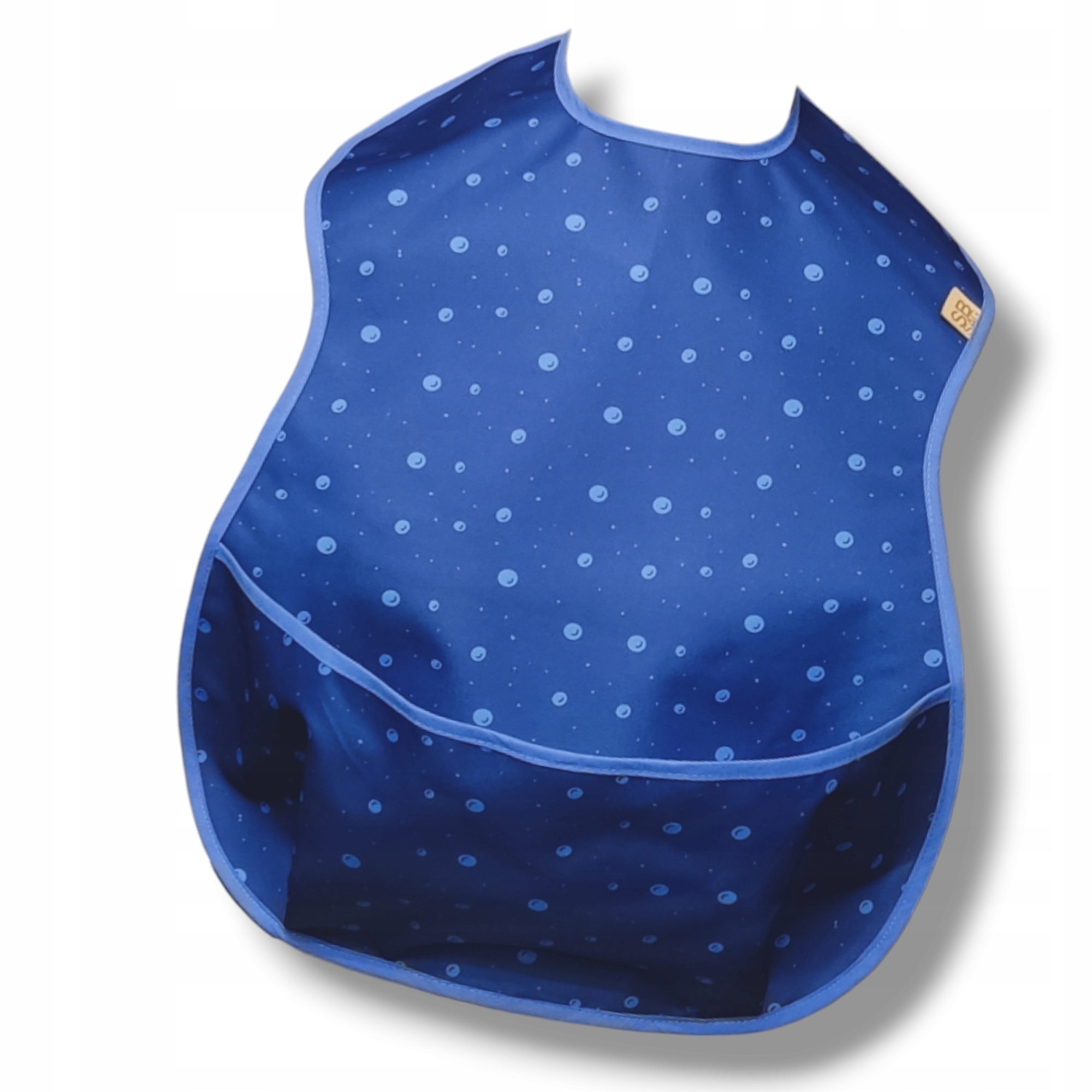 Нагрудник легкий, водонепроникна прогумована тканина. захищає від бруду, і при цьому залишається комфортним при контакті з тілом. Дуже важливою особливістю наших виробів є відкидна кишеня, яка вловлює падаючі залишки їжі чи напоїв. Глибина кишені запобігає падінню під час нахилу. Форма нагрудника нагадує пісочний годинник. Закриває плечі, звужується в області руху рук - тому не рухається, і знову розширюється внизу. Додатковою перевагою наших нагрудників є легкість чищення та швидка готовність до повторного використання. Наші вироби відрізняються невеликою вагою і м'якістю. Бавовняна облямівка навколо нагрудника та шнурки для застібки не подразнюють шкіру. Зав'язування є найефективнішим - швидким і виключає ризик того, що пацієнт зніме нагрудник самостійно, і дуже міцним на відміну від липучок, які швидко виготовляються і можуть дратувати, або гачки, які легко «розробляє» дитина. Крім того, зав’язка дозволяє нагруднику ідеально прилягати до шиї, щоб уникнути потрапляння бруду під нагрудник.