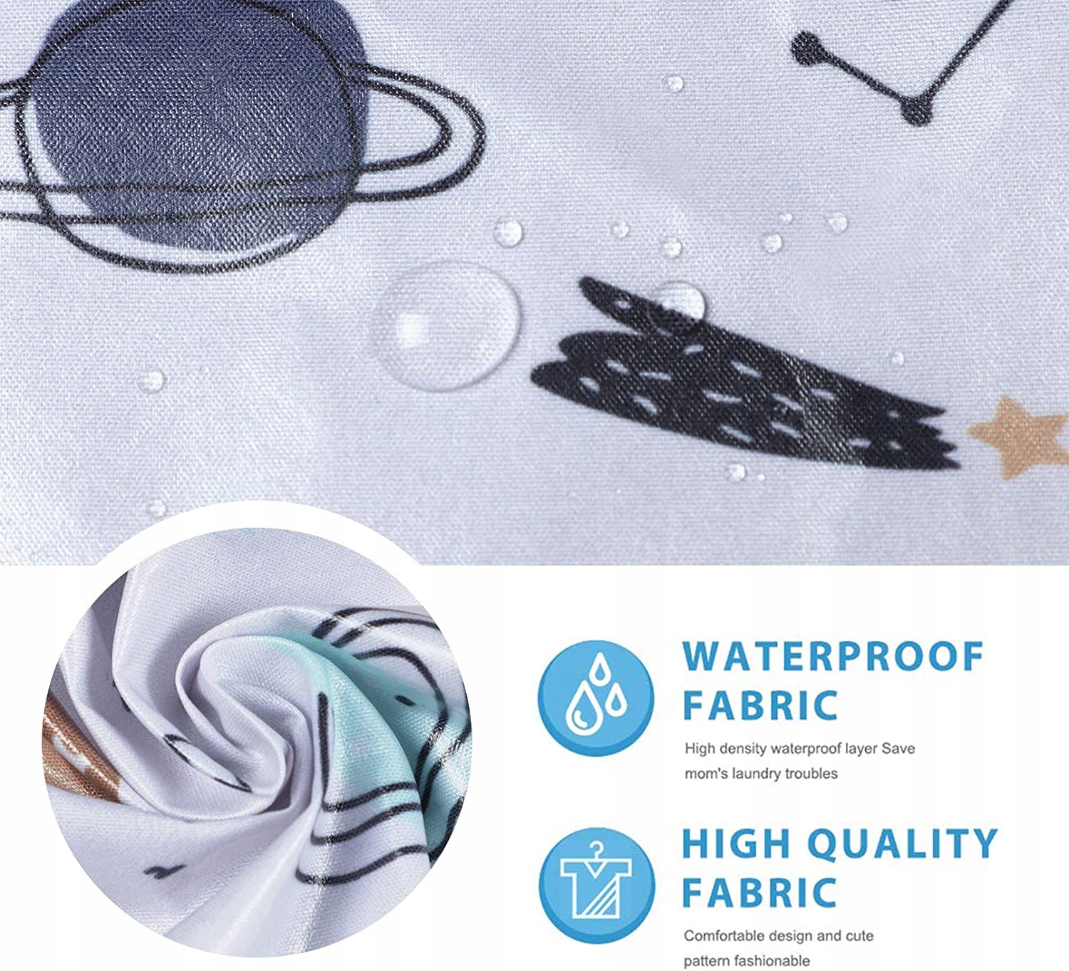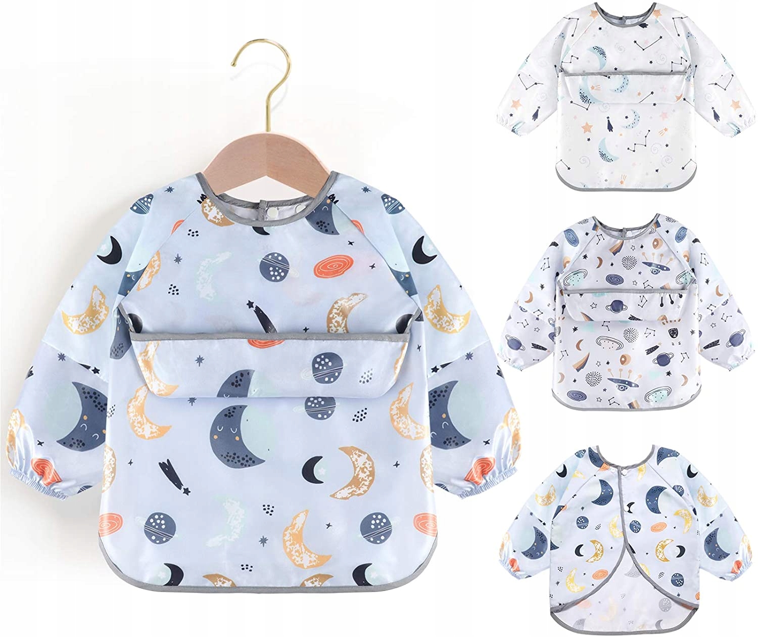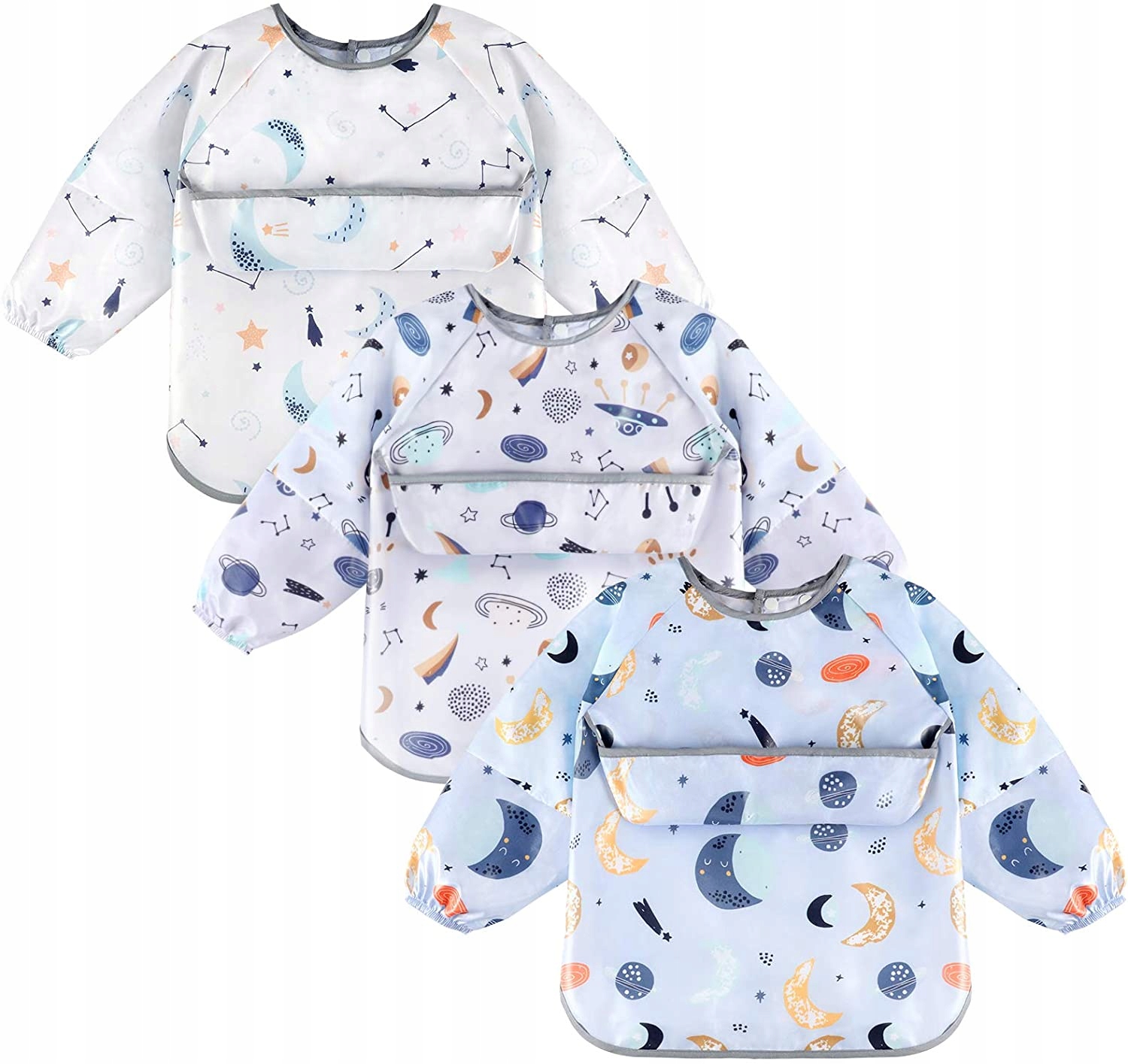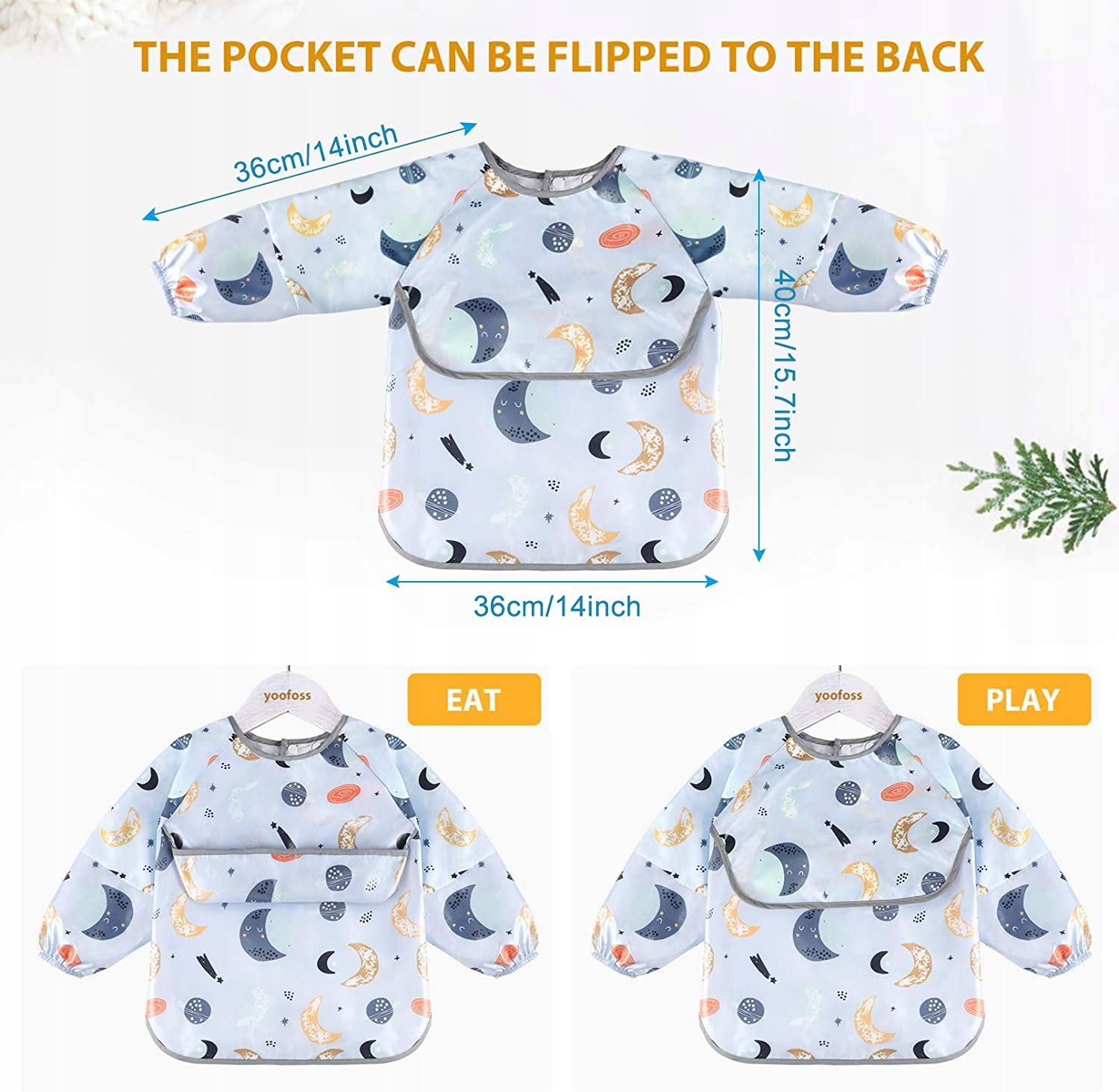100 бавовна Виготовлена з легкої чистої бавовни, дитяча білизна м’яка та зручна в носінні. Водонепроникний зовнішній шар, наші лінійки стійкі до жиру та легко чистяться. Ви можете просто витерти плями вологим рушником, їх також можна випрати вручну або помістити в пральну машину в холодній воді та повісити для висихання. Багато стильних дизайнів білизни для годування з рукавами в 3 стилях, включаючи веселий і красивий принт, який ідеально підходить для носіння вашої дитини під час їжі, малювання, ігор або інших занять. Унікальна багатофункціональна конструкція Невидима конструкція кишені може ефективно збирати їжу та рідину без переповнення. Також кишеню можна відвернути, роблячи білизну з рукавами фартухом. Регульований розмір лінійки для годування підходить для дітей віком від 624 місяців із регульованою застібкою на шиї, необхідною для годування немовлят або як художній фартух для куріння.