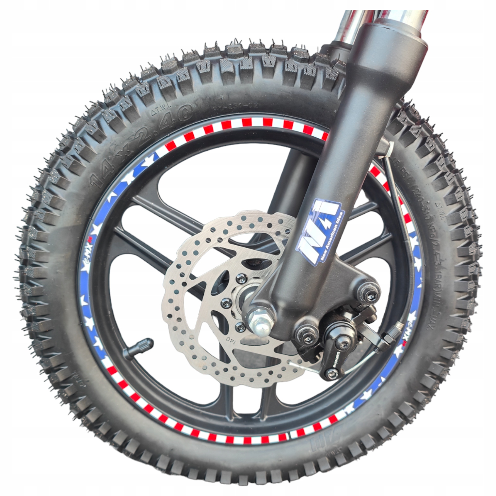 E-MX 14-це ідеальний електричний мотоцикл для дітей, які хочуть відчувати себе маленькими гравцями. Керований безчесним двигуном 36V 350 Вт і оснащений літієвим акумулятором 36 В 5,2AH, він забезпечує діапазон до 18 км - ідеально для більш тривалих поїздок у лісі або маєтку.