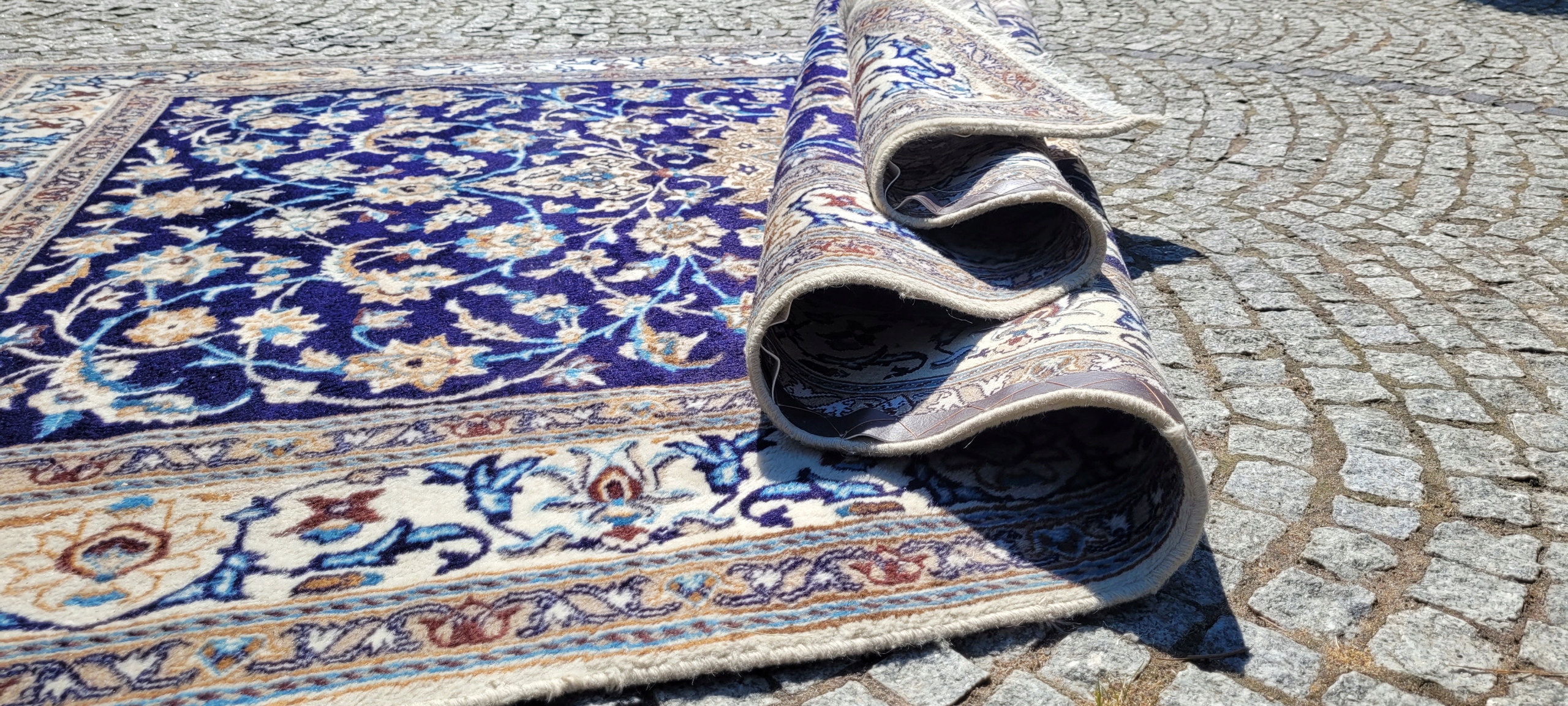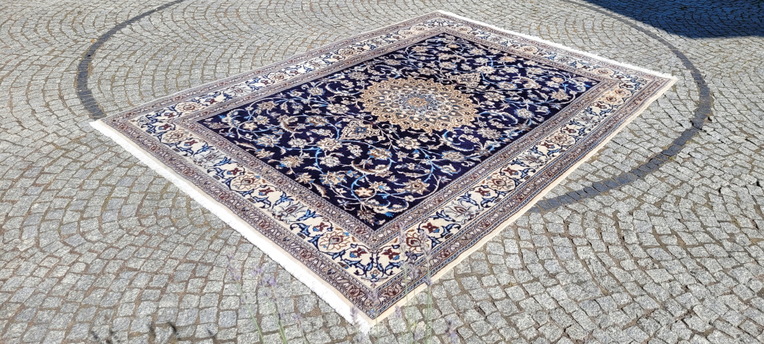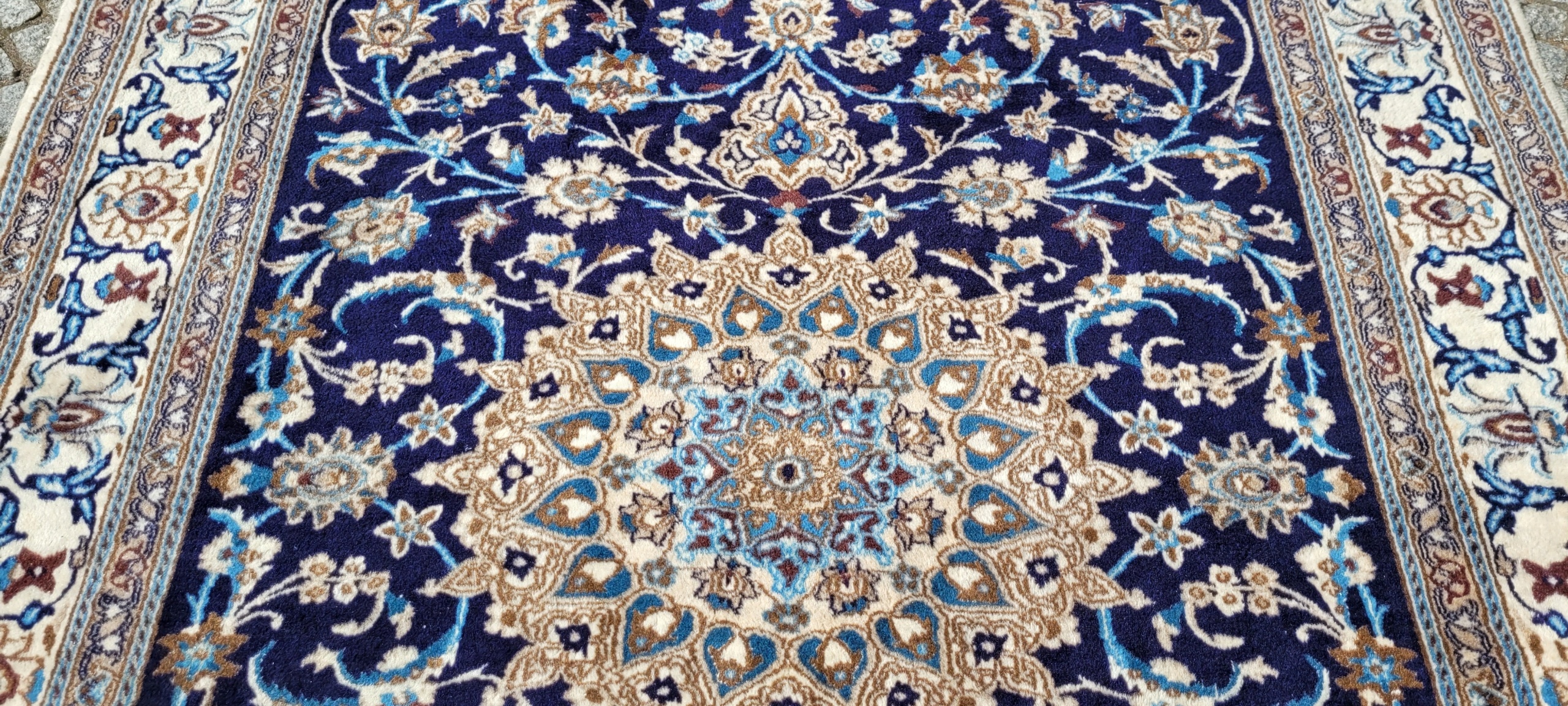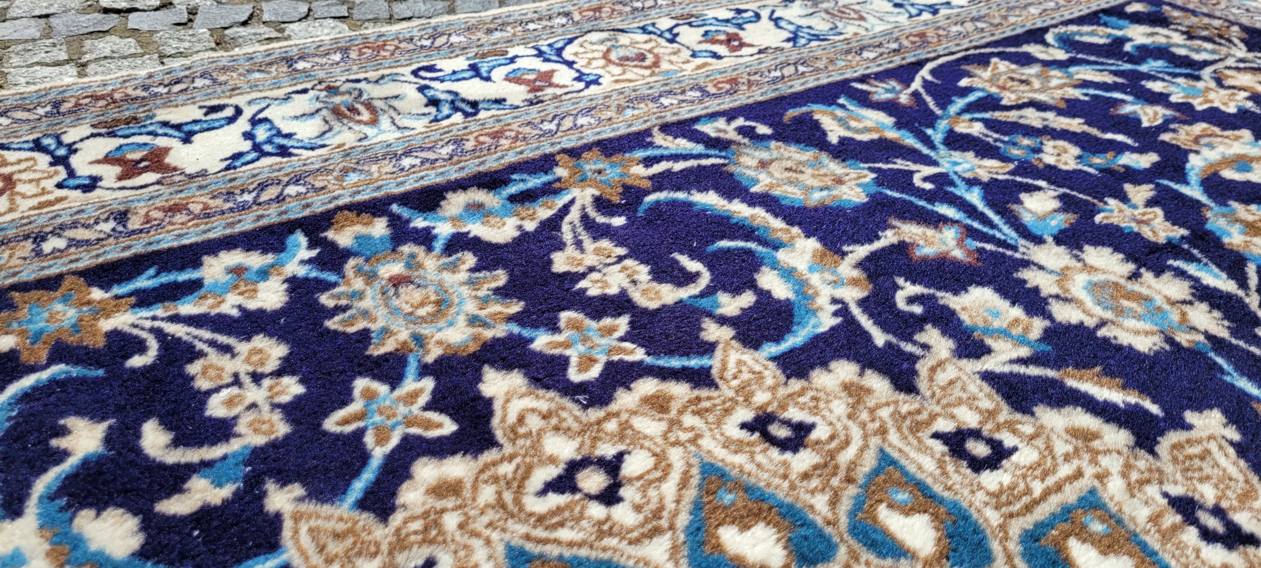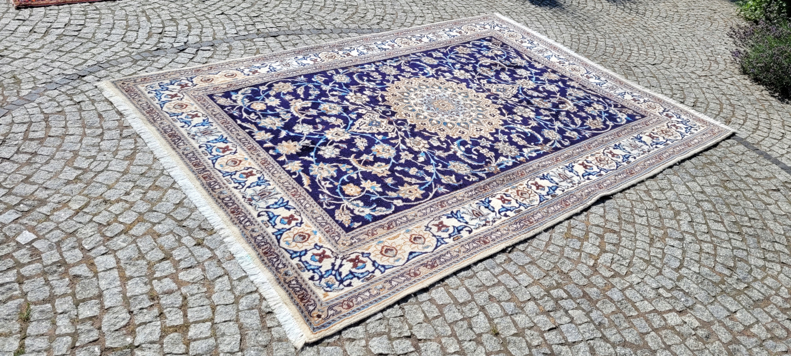 Перський килим Nain. Виткана вручну з вовни найвищої якості. Він характеризується компактним, блискучим флісом і красивими кольорами та візерунками. Він у дуже хорошому стані, мінус видно на фотографіях.