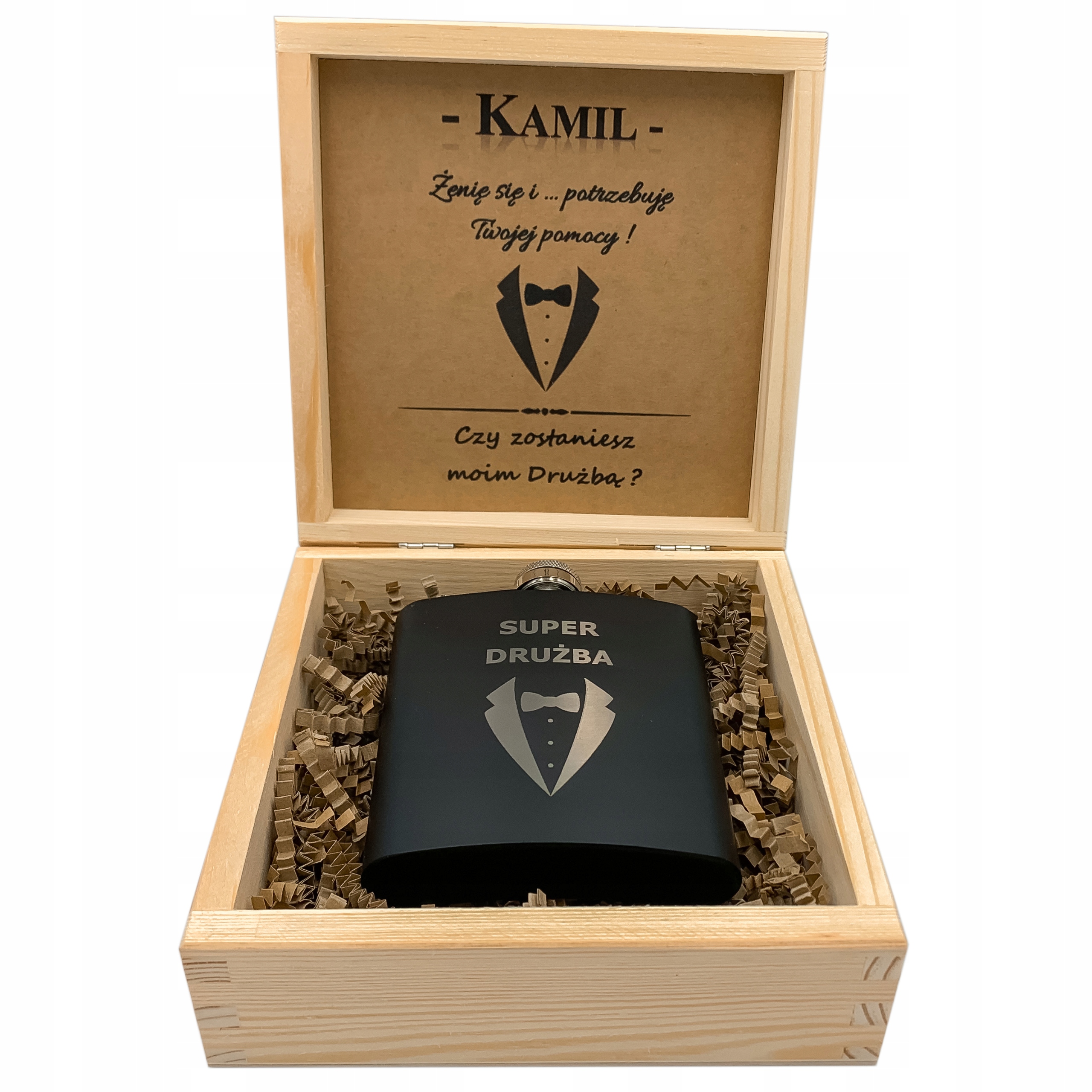 Дерев'яна скринька у формі прохання кума. Всередині є ярлик з написом, який видно на фото. Представлена GiftBoxце унікальний та оригінальний подарунок, який неодмінно порадує кожного нареченого.