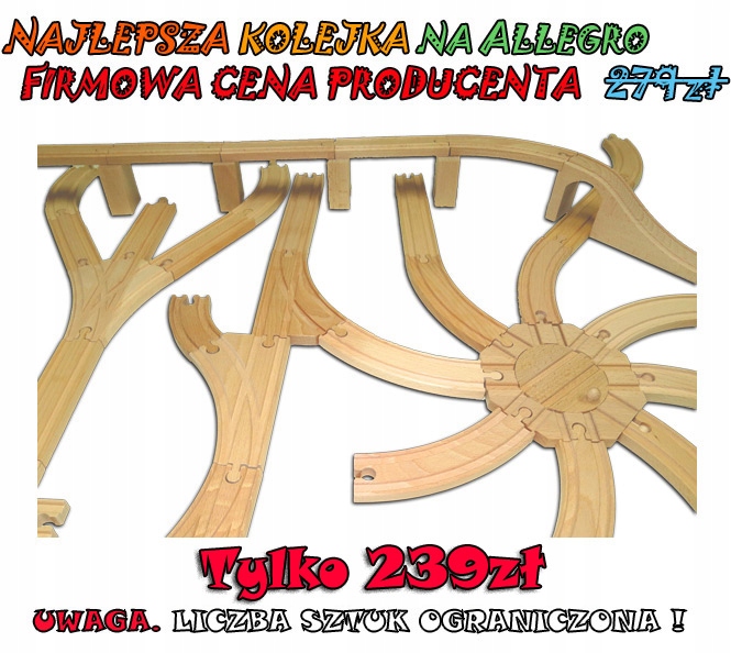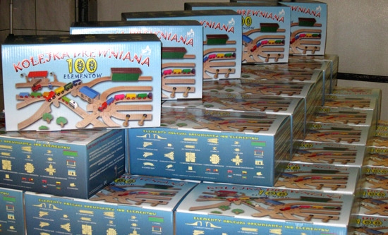 Наші поїзди - це дерев'яні, екологічні іграшки для дітей. Виготовляється в Польщі з деревини бука, що надходить з польських лісів, а всі матеріали, які використовуються у виробництві, мають відповідні дозволи та сертифікати.