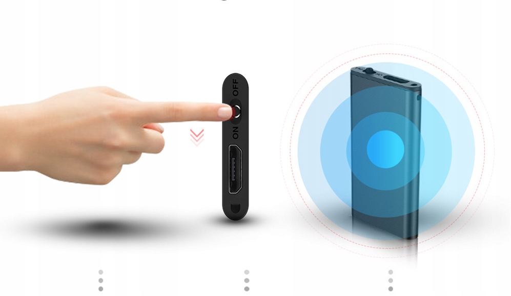 - Користуватися пристроєм дуже просто: на панелі є кнопка ON/OFF сторону, яка вмикає пристрій. Після перемикання реєстратора в положення ON загоряється і блимає червоний контрольний діод, сигналізуючи про готовність до роботи - коли він гасне, запис починається і припиняється переведенням повзунка реєстратора в положення OFF .< /li>