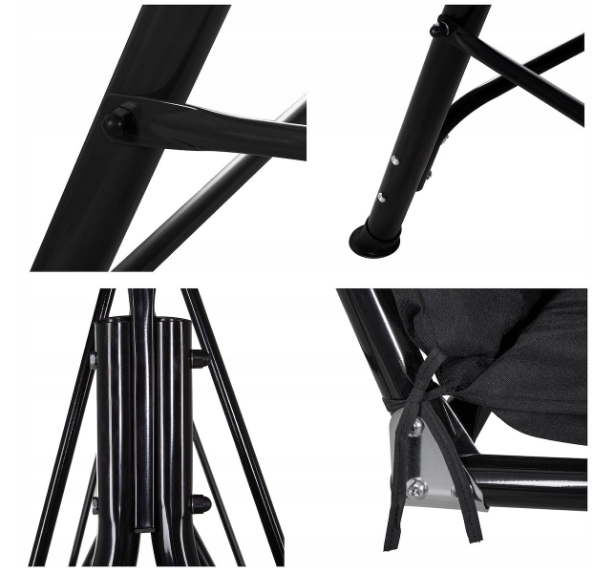 Стійка конструкція виготовлена з товстих, стійких до пошкоджень труб з порошковим покриттям. Кінці ніжок оснащені елементами проти ковзання, щоб гойдалки можна було використовувати як на терасі, так і в саду, не боячись зісковзнути під час використання.
