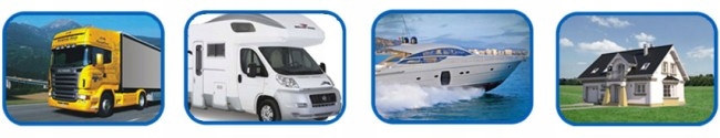 Спроектований, серед іншого, для автомобіля, автобуса, таксі, вантажівки, яхти, човна, кемпера, каравану та дачі
