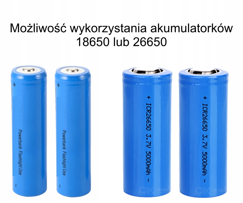 - Живлення для XHP 90: батарея 2x 26650 або батарея 2x 18650 (26650 в комплекті)