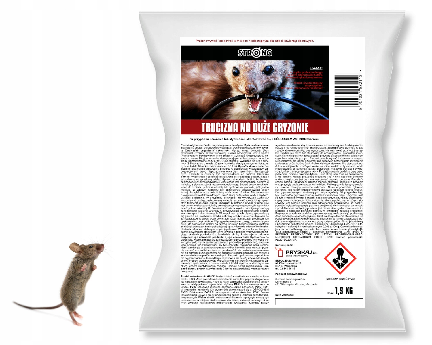 СИЛЬНА ОТРУТА ДЛЯ ВЕЛИКИХ ГРИЗУНІВ призначена для використання як у приміщенні, так і на вулиці, а також навколо будівель з метою захисту здоров'я людей, тварин і продуктів. та матеріали.