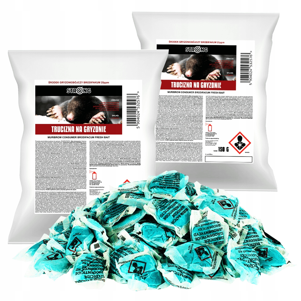 СИЛЬНА ОТРУТА ДЛЯ ГРИЗУНІВ - сильний родентицид, ефективний проти гризунів, яких важко контролювати, допомагає при проблемах з кротами та полівки. Завдяки смачним інгредієнтам суміші препарат виявляється шкідниками навіть на значній відстані, а завдяки вмісту перевіреної діючої речовини - БРОДІФАКУМ - він на 100% летальний після одноразового споживання. .