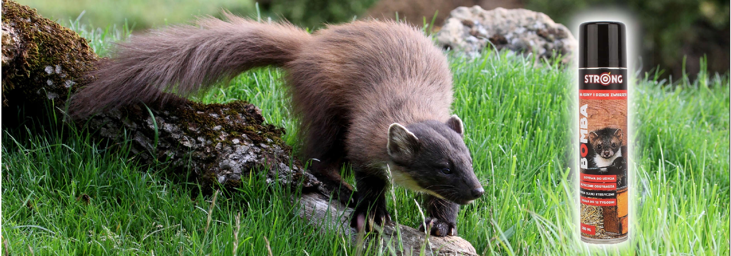 Репелент у вигляді легкої в нанесенні туманної бомби у вигляді водної суспензії мікрокапсул натуральних ефірних масел, ефективно відлякує куниць, лисиць, ласкита інші дикі тварини, які можуть завдати великої шкоди. Виявлені ними пахучі речовини, що містяться в препараті, ефективно змушують їх втікати з місця нанесення репеленту.
