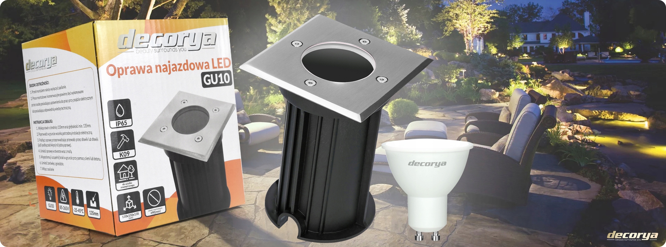 NAJAZDOWA OPRAWA LED LAMPA GRUNTOWA OKRĄGŁA OGRODOWA GU10 230 KWADRATOWA