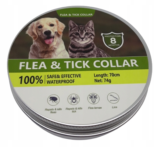 Нашийник повністю регулюється і може бути підігнаний під розмір нашого вихованця. Ми надягаємо його на шию і таким чином підтримуємо профілактику від кліщів, вошей, личинок, бліх, комарів та інших паразитів.