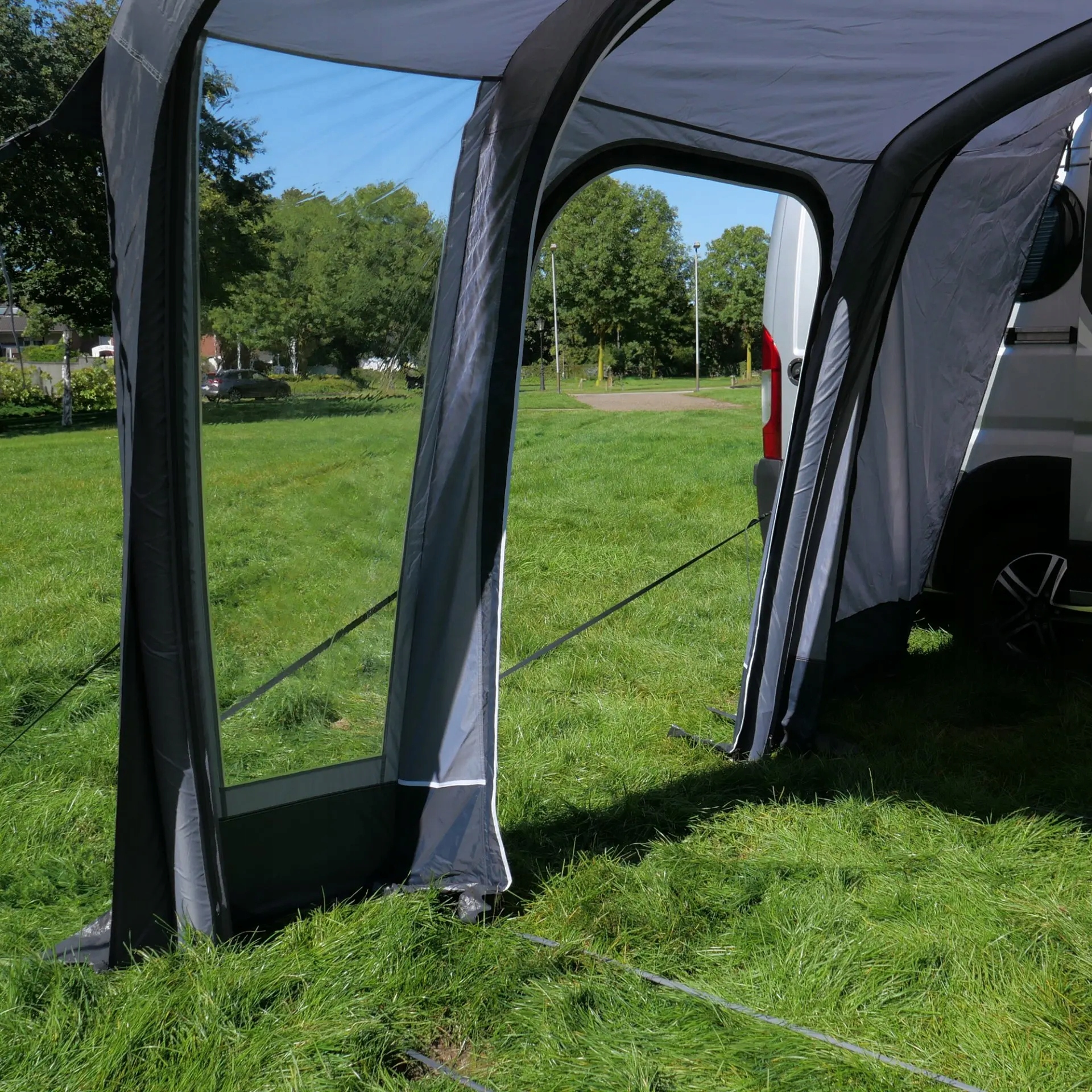 професіонал, висока якість надувний намет до будинку, фургона та причепа. швидка установка без рами, водонепроникний матеріал 5000 мм, ультрафіолетове покриття 50+ Windows з сітками комарів. Площа комунальних послуг 10 м² . Насос, сумка та оселедець включені. Ідеально підходить для кемпінгу! 4