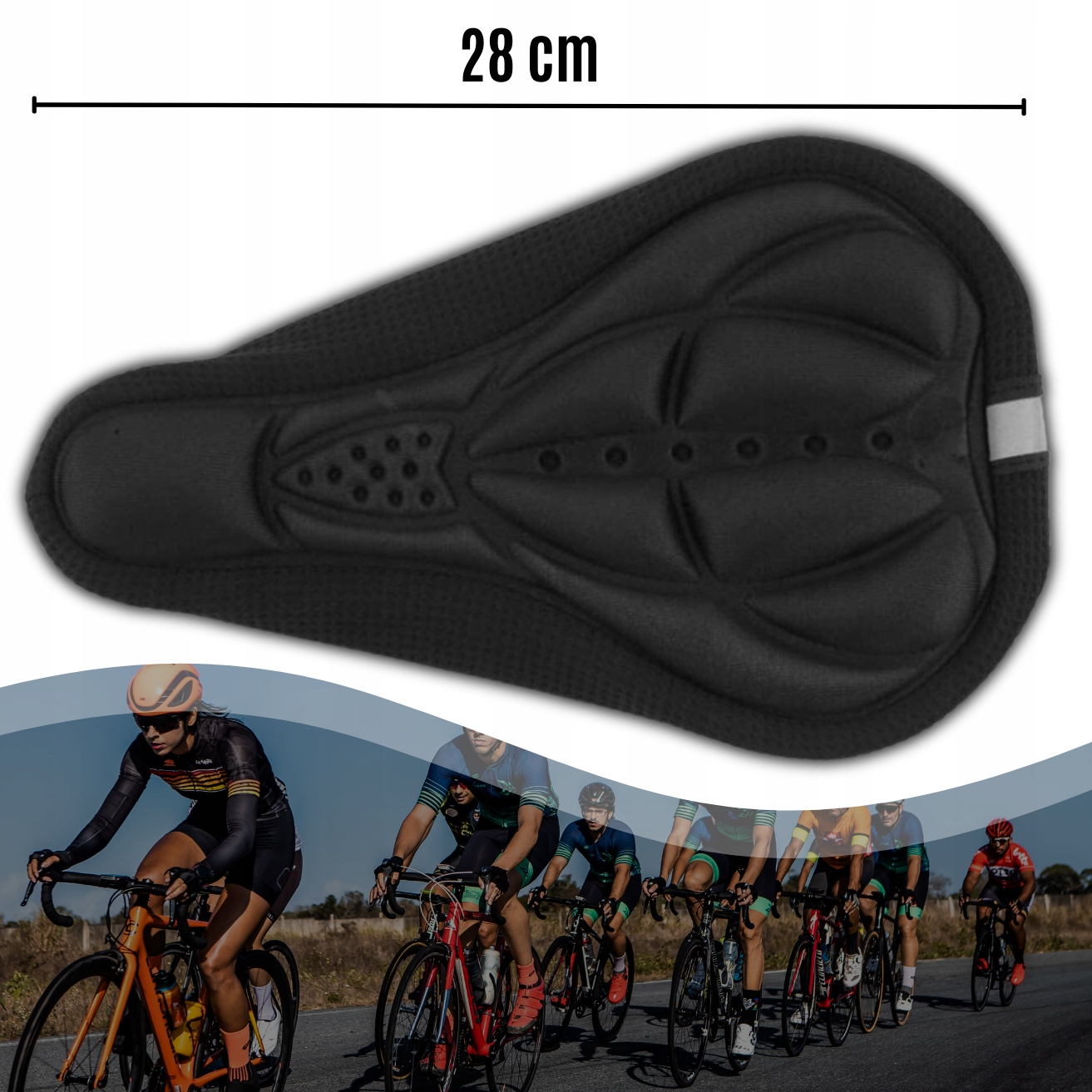 Забезпечує комфорт під час довгих подорожей, захищає сідло від зносу, має нековзку поверхню, підходить для більшості сідел і легко встановлюється. Світловідбиваючі елементи покращують видимість у темряві.