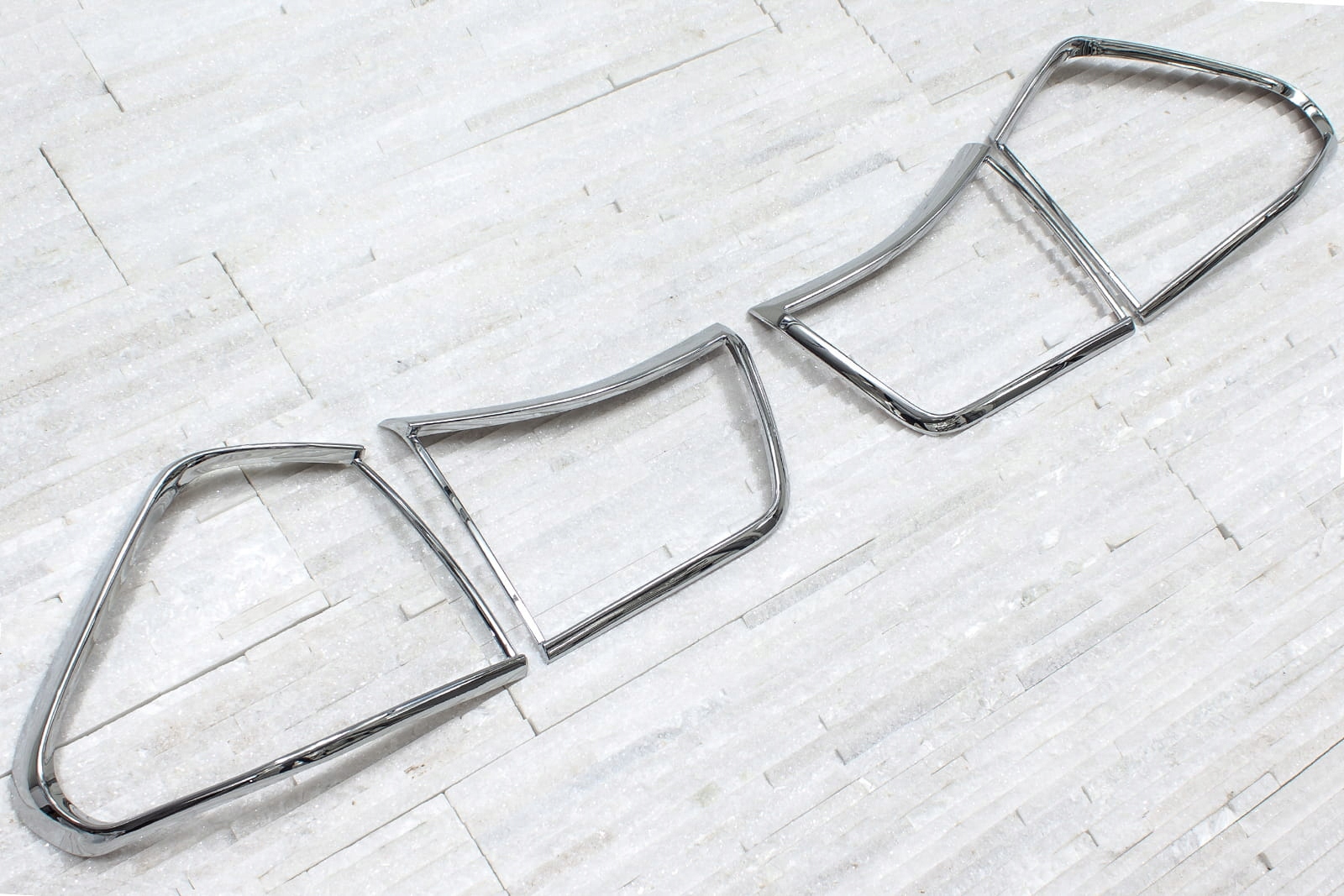 Стилістичні накладки підкреслюють форму задніх ліхтарів. Поєднання дзеркального блиску хромованої поверхні з динамічною лінією накладок надає заднім ліхтарям стильну, елегантну обстановку, яка ідеально відповідає характерному спортивному стилю LEXUS. Вони додають лампам візуальну глибину, роблячи їх справжньою окрасою задньої частини автомобіля. Планки ідеально поєднуються з іншими елементами оздоблення LEUS, завдяки чому їх використання дозволяє досягти цілісного, виразного стилю автомобіля.