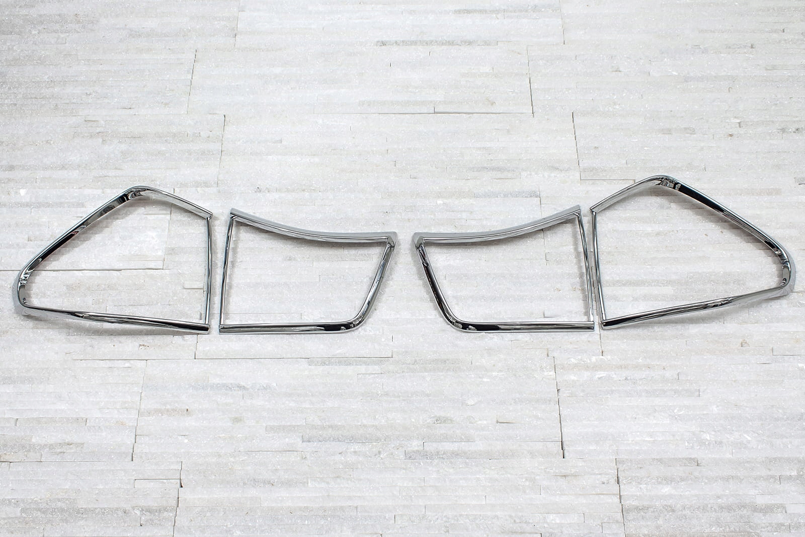 Виріб виготовлено з високоякісного хромованого ABS-пластику. У комплект входить набір з двох накладок на задні ліхтарі.