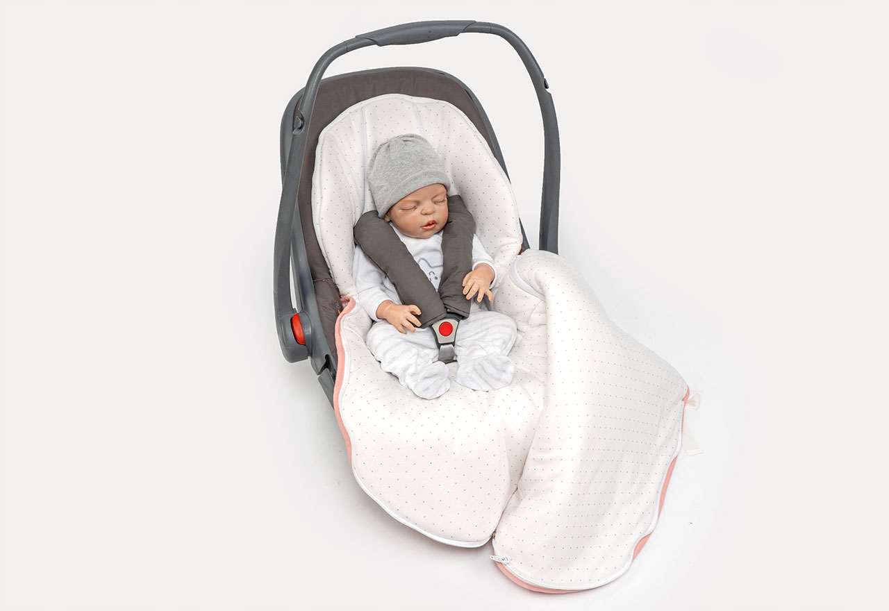 Відкрита конструкція дозволяє легко встановити його на автокрісло та посадити дитину. Немає ні штанів, ні рукавів, тому користуватися ним досить просто. Як випливає з назви, сповивання набагато зручніше, ми не будимо сплячу дитину і можемо вільно регулювати температуру, не втручаючись у роботу ременів безпеки.