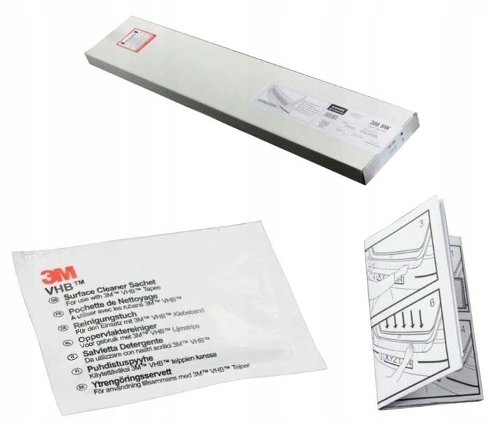 Накладка прикріплена з подвійною стрічкою, яка розташована на всіх чотирьох краївах смуги.
