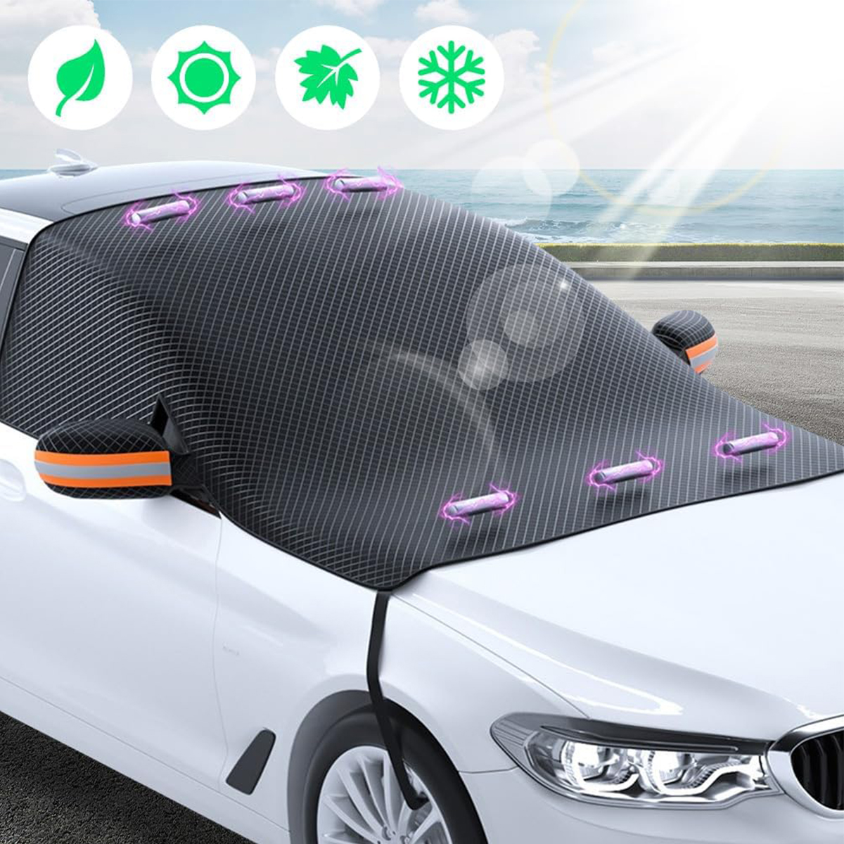 ● Потовщений матеріал: потовщений матеріал цього снігового козирка забезпечує додатковий захист від снігу та лід, зберігаючи ваше лобове скло чистим і безпечним.