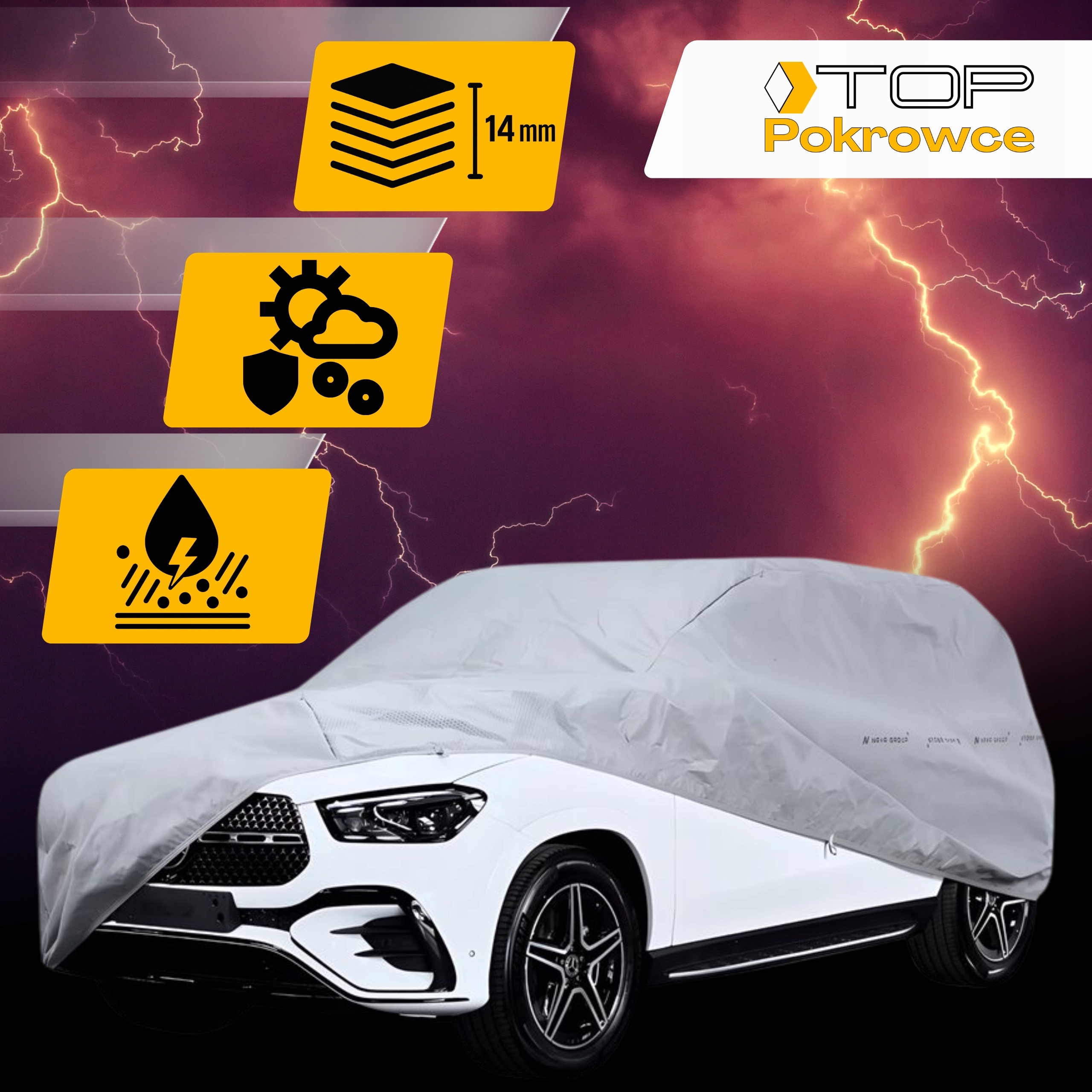 Шукаєте ефективний і міцний чохол, який захистить Ваш автомобіль незалежно від пори року? Протиградове покриття товщиною до 14 мм є надійним захисним бар'єром від непередбачуваних погодних умов. Завдяки п'ятишаровій структурі, що включає товстий шар амортизаційної піни, чохол ідеально захищає кузов від механічних пошкоджень і впливу зовнішніх факторів.⛈️☀️❄️