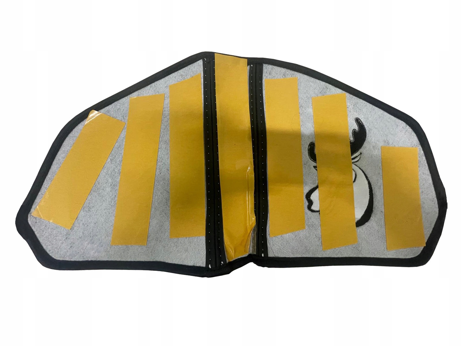 Накладка виконана зі шкірозамінника (екошкіра), ламінована губкою товщиною 4 мм, оздоблена декоративною окантовкою. Ззовні (від дверей) вишита голова лося.