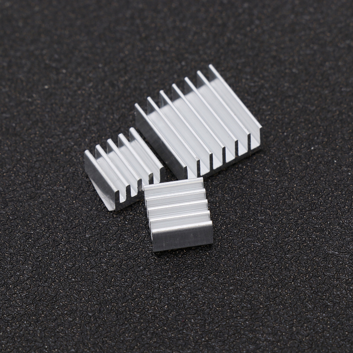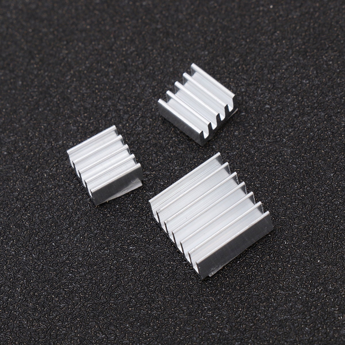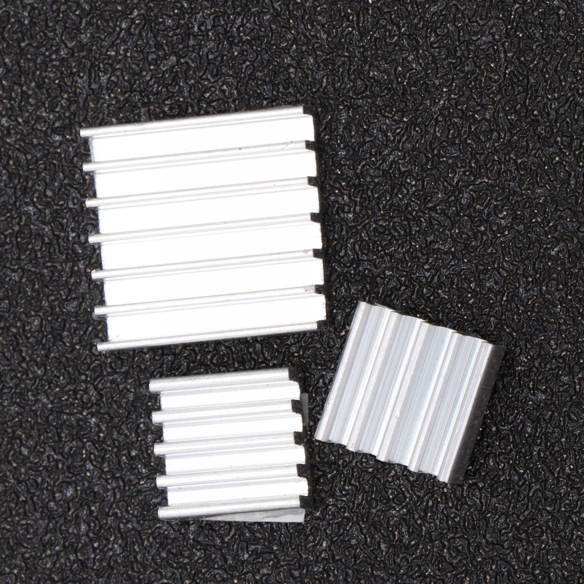 Використовується для Raspberry Pi. Один великий радіатор для процесора ARM і два маленьких для контролера локальної мережі. Ці алюмінієві радіатори містять самоклеючу термострічку, яка забезпечує ефективну передачу тепла радіатору, забезпечуючи додаткове охолодження електроніки.