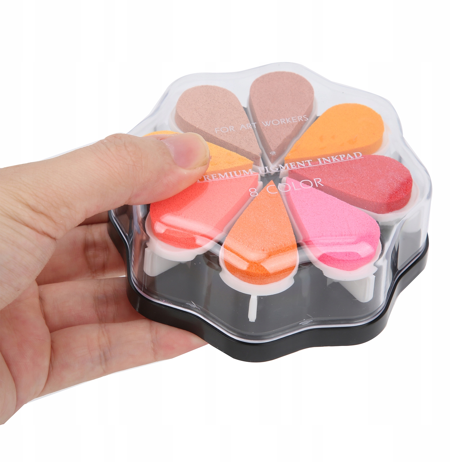1. Кожен блок для друку пелюстків складається з 8 чарівних кольорових поєднань, завдяки якому він цвіте під рукою. Подушка на основі води на основі пігменту з високою покриттям, відмінна стійкість до світла, не в’яне і не зміцнюється. Унікальна структура, що ущільнюється, може враховувати деталі і в той же час розмиватись про велику поверхню, що зручно використовувати. Кожну окрему пелюстку можна видалити та використовувати окремо, вільно змінювати порядок, зручно для забарвлення, штампування, запису кольорів тощо