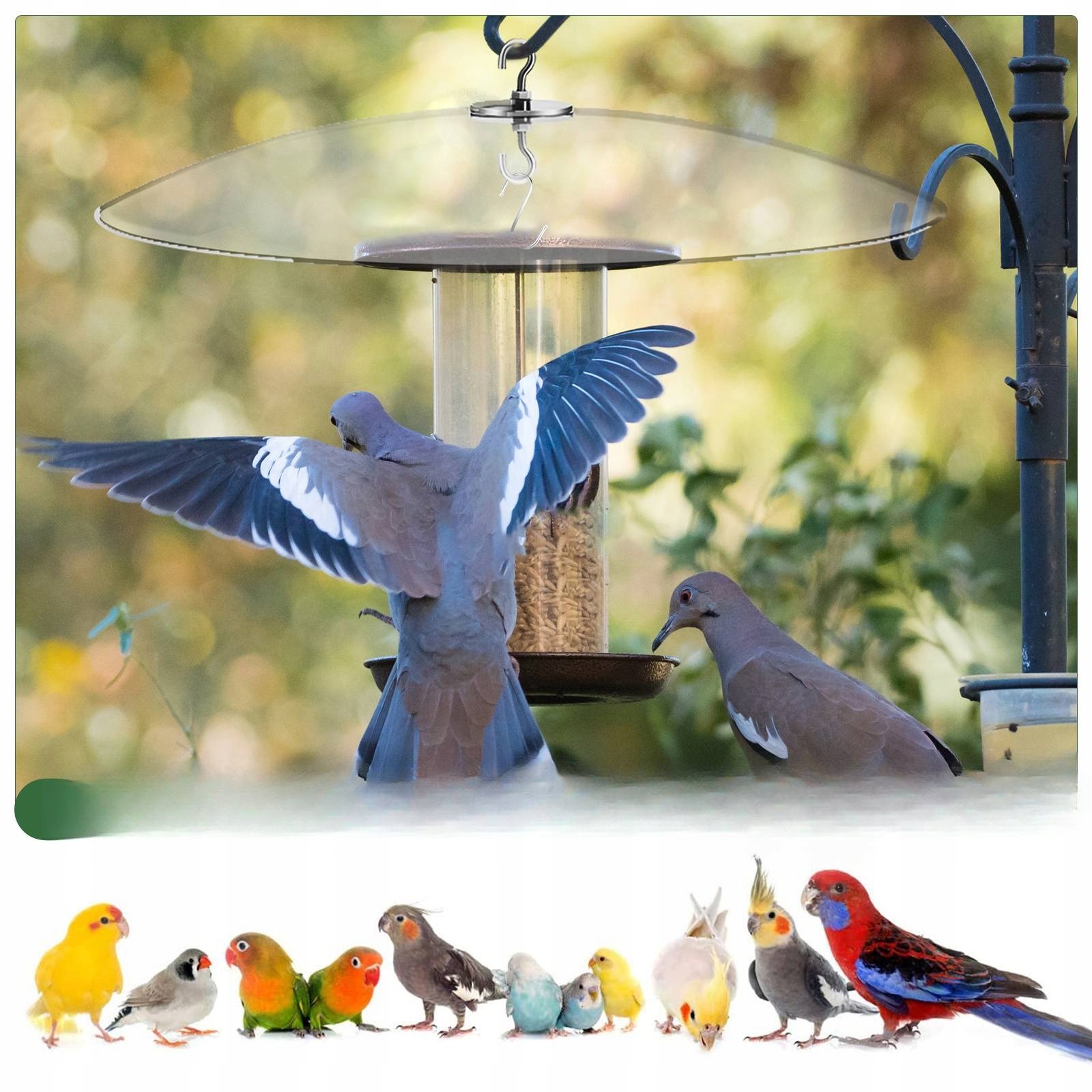 ✅Представляємо нашу кришку для годівниць! Це велике відділення для білок призначене для запобігання намокання корму для птахів у дощові дні. Пластикове відділення годівниці для птахів прозоре та міцне, а залізний гачок достатньо міцний, щоб утримувати годівницю на місці.