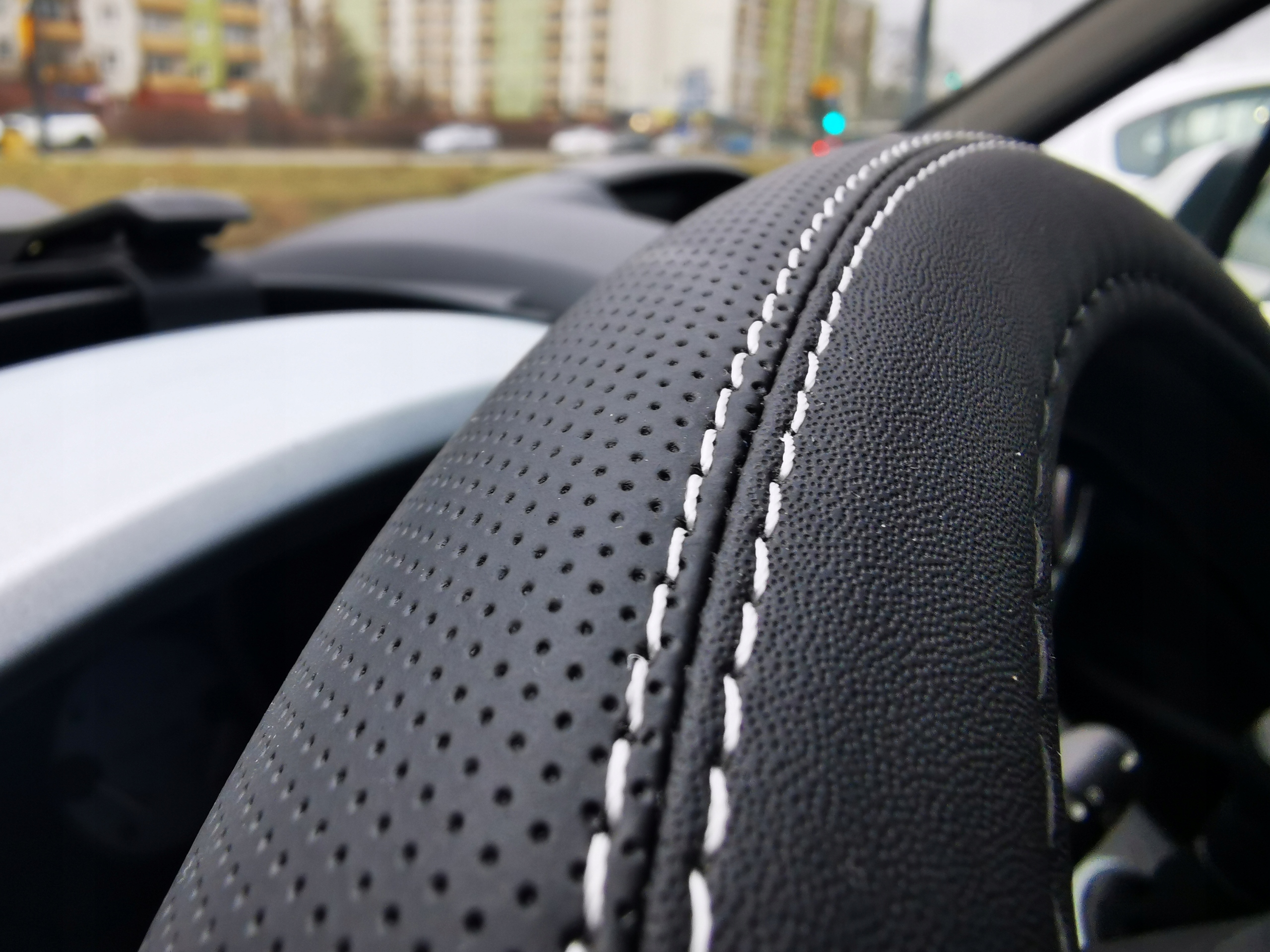 Чохол на кермо з високоякісної напівперфорованої екошкіри.