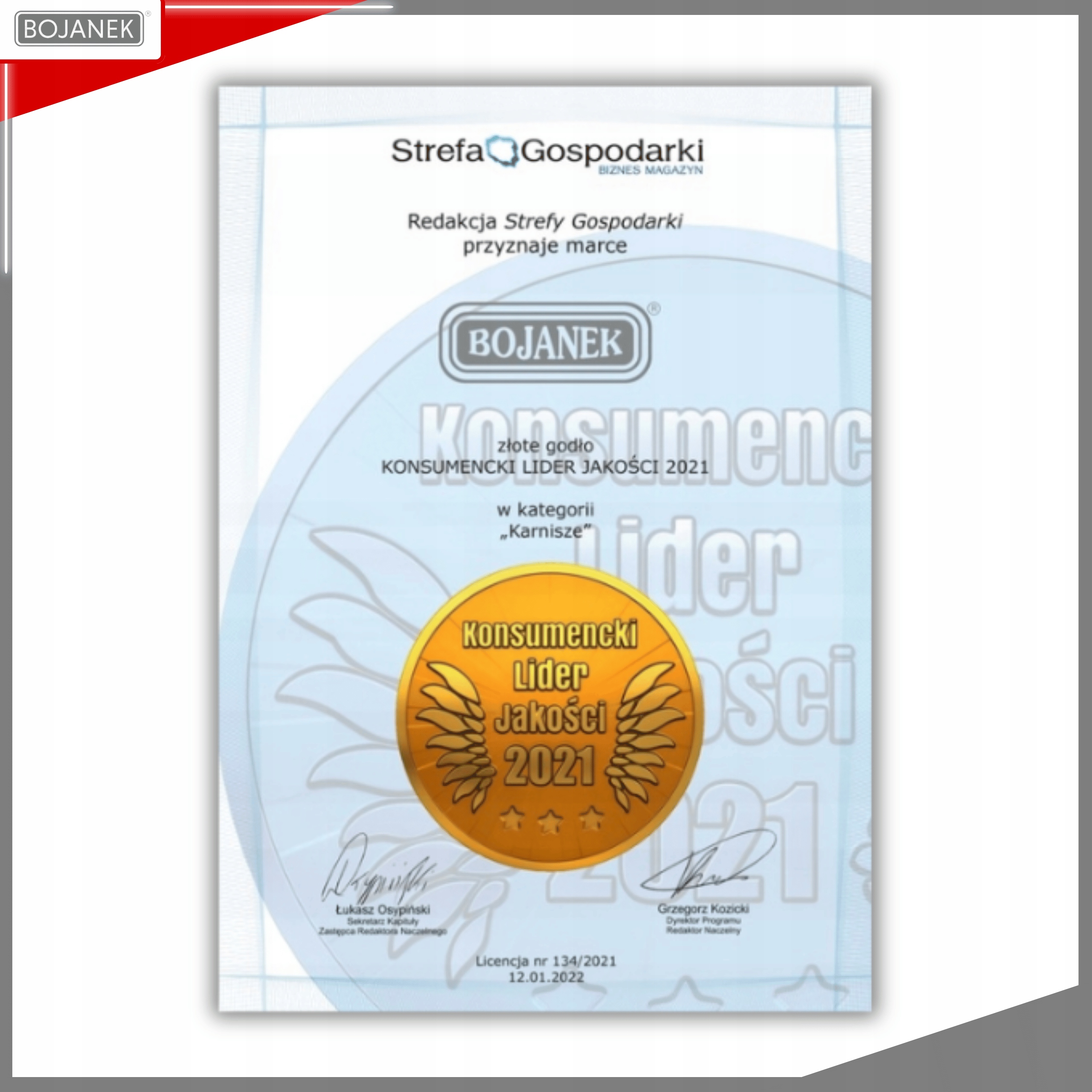 Компанія BOJANEK є ЛІДЕРОМ ринку в області віконних систем. Понад 30 років досвіду означає, що продукція торгової марки BOJANEK характеризується дуже високою якістю виготовлення, що забезпечує надійність і комфорт використання протягом багатьох років. Впізнаваність бренду в країні та в усьому світі призвела до отримання нагороди ЗОЛОТИЙ ГЕРБ CONSUMER QUALITY LEADER 2021.