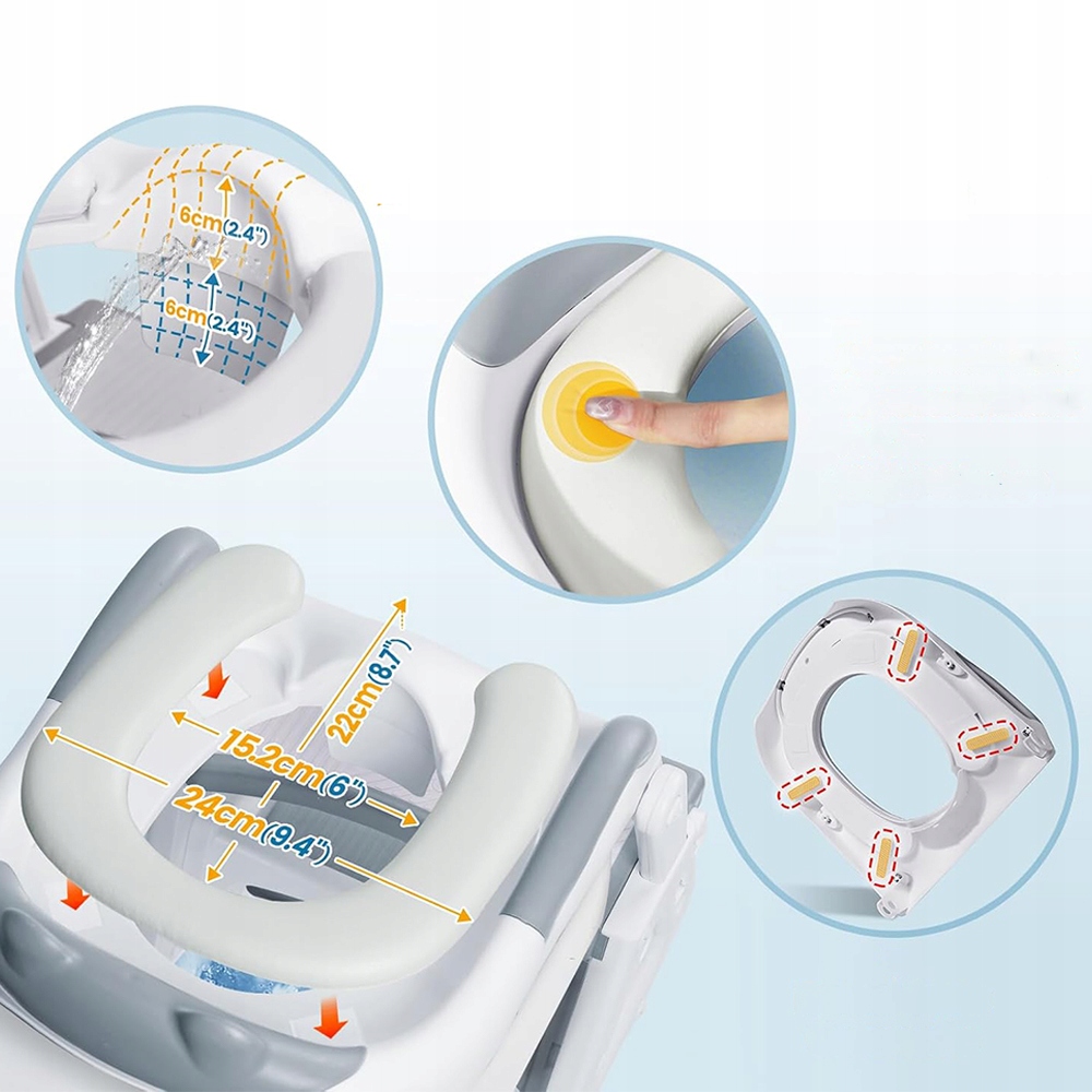 Протиковзаюча 6-точкова основа сходинок і 4-точкова основа сидіння підвищують стійкість сидіння,ефективно запобігаючи його ковзанню дозволити дитині користуватися туалетом самостійно та безпечно.