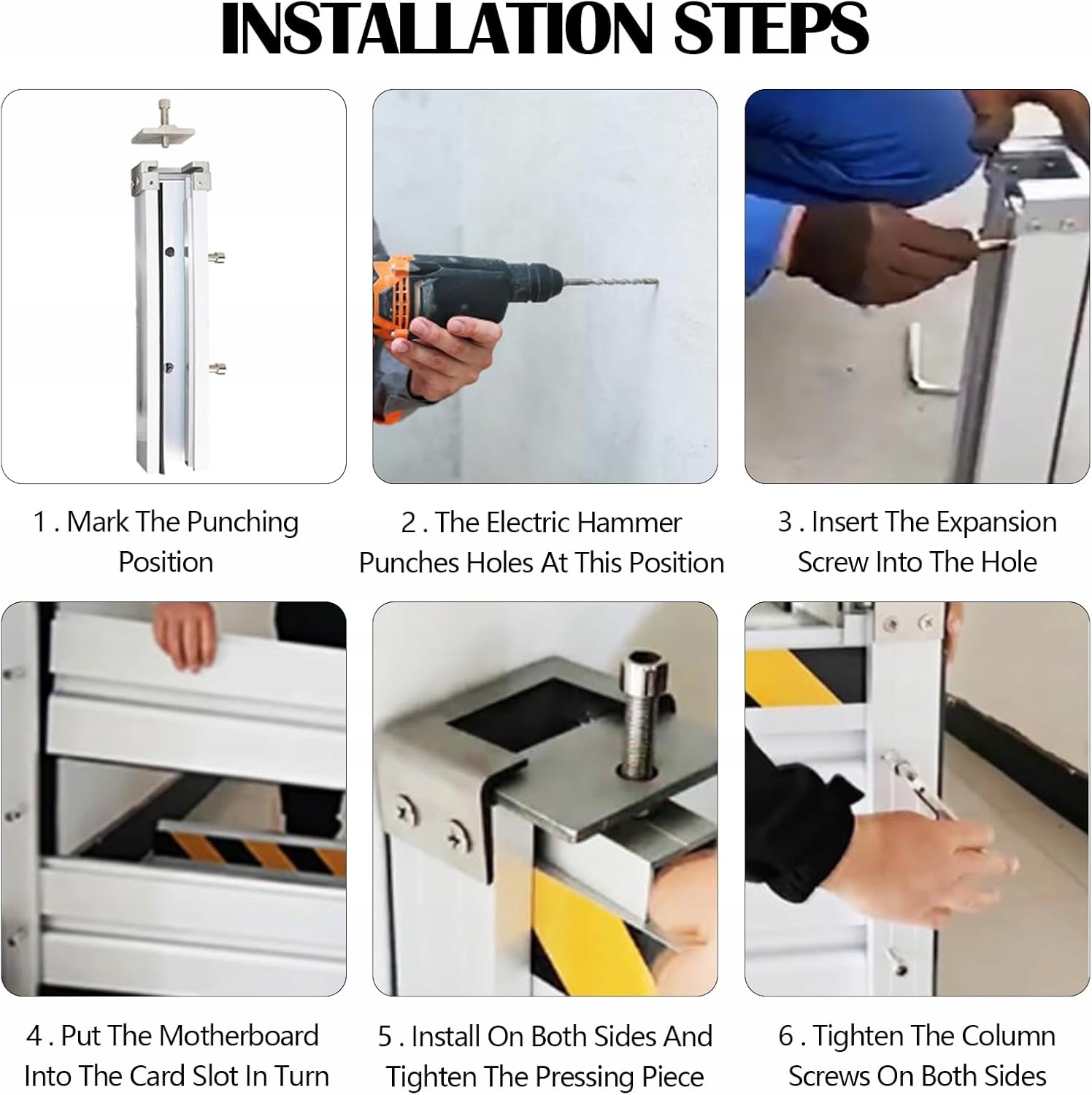 ➡️Просте та швидке складання (6 кроків): Стаціонарні стійки кріпляться до стіни за допомогою розширювальних гвинтів, а перегороджувальні пластини вставляються у готові прорізи. Швидке розбирання дозволяє легко зняти бар’єр після того, як загроза мине.