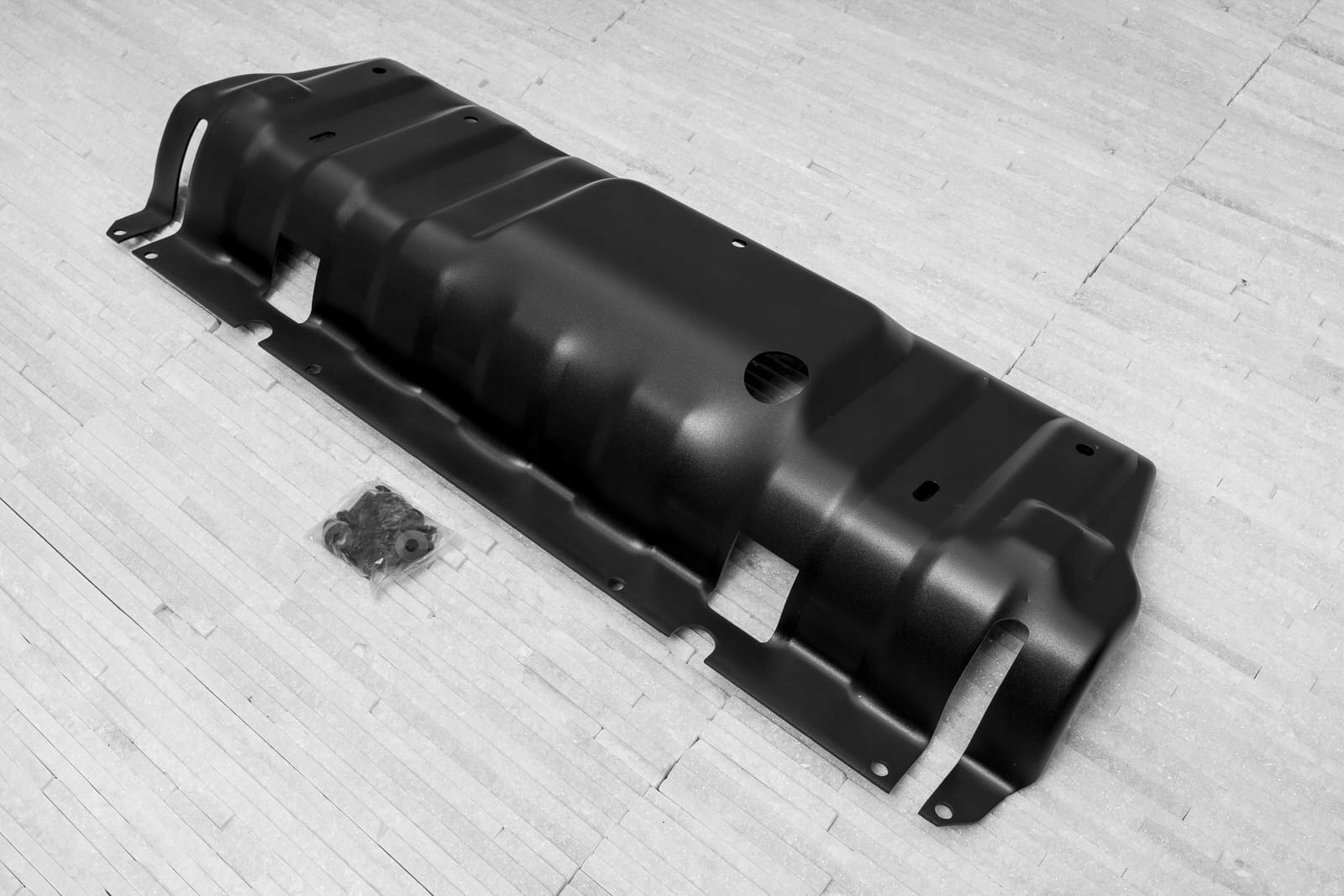 Спеціальна накладка на бампер ідеально поєднується з іншими елементами оздоблення, підкреслюючи при цьому спортивний, потужний характер Wrangler. Елемент, крім своїх візуальних цінностей, також відіграє важливу роль як щит від, серед іншого, удари каменями під час руху по складній місцевості.