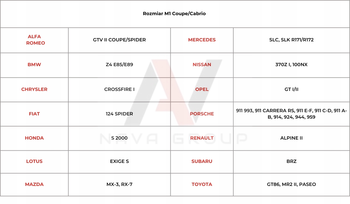 - Широкий діапазон розмірів з урахуванням різного типу кузова та довжини автомобіля
