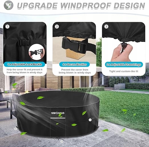 Оснащений 4 застібками, 2 регульованими шнурками та 2 бічними вітрозахисними пряжками, чохол щільно тримається навіть під час сильних поривів.