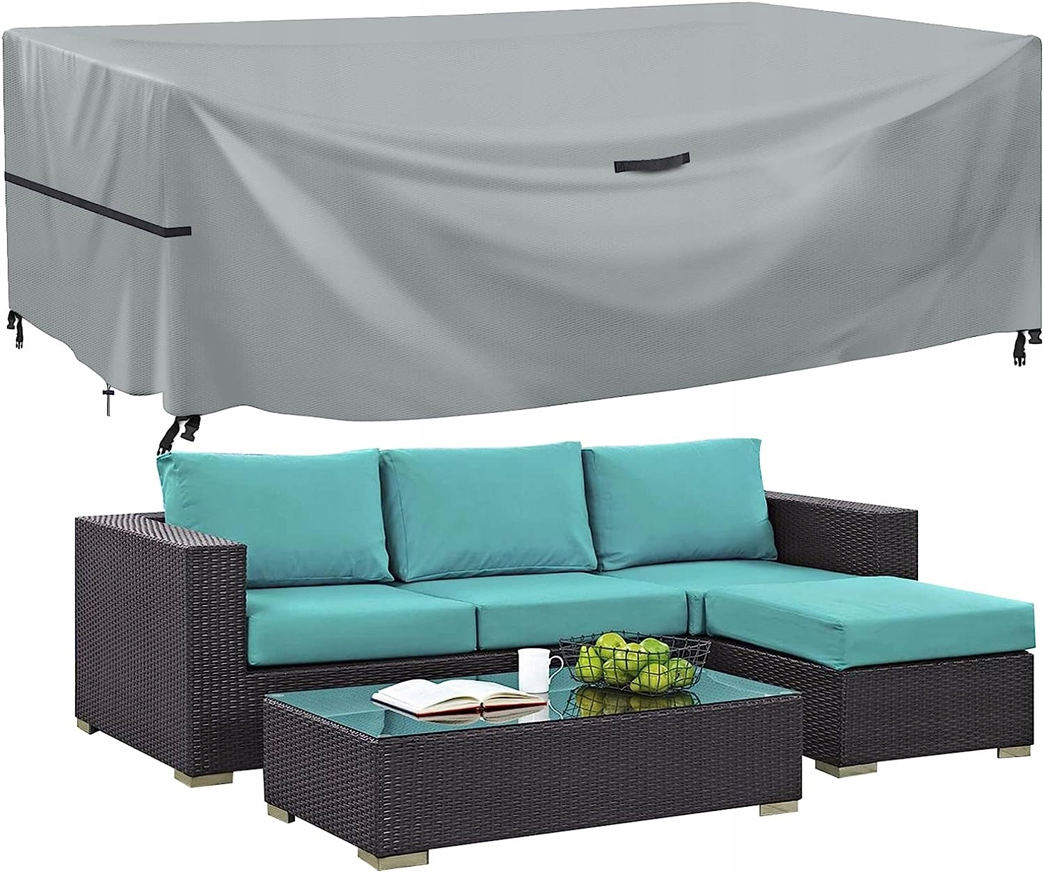 чохол для садових меблів прикріплений і міцно закріплений за допомогою 2 ремінців на липучках, 4 пряжок і шнурка. Не турбуйтеся про те, що чохол для садових меблів може здути сильним вітром, завдяки липучкам на обох кінцях, розташованих близько до землі, які можуть міцно закріпити чохол. Добре захистіть свої меблі, якщо їх здує у найвітряніші дні, міцно тримайте їх за допомогою пряжок на нижній частині меблів.