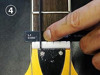 Після вибору накладки Groobar™ із товщиною, що відповідає бажаній висоті струни на сідлі, просто відшліфуйте сідло, поки файл не торкнеться шайби. Завдяки цьому ми ніколи не прорізаємо сідло надто глибоко, що може призвести до дзижчання струн.