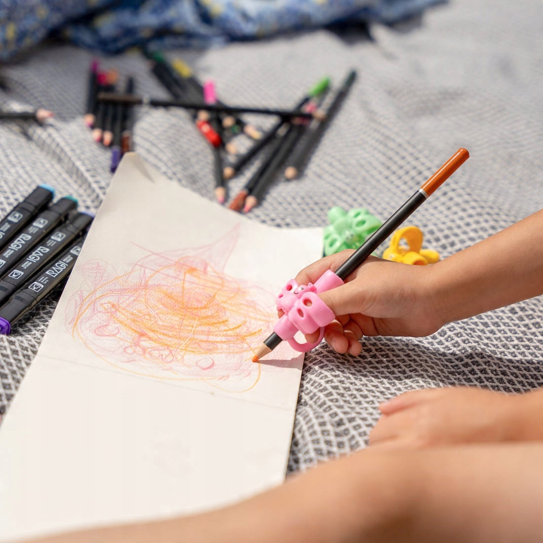 Набір із 4 різнокольорових ковпачків для ручки, олівця, олівця або ручки допоможе вам ваші перші серйозні кроки під час навчання письма. Накладки чудові в ситуаціях, коли потрібно показати дитині, як тримати інструмент, а завдяки нетоксичній гумі накладка безпечна і не дозволяє інструментам вислизати з рук.
