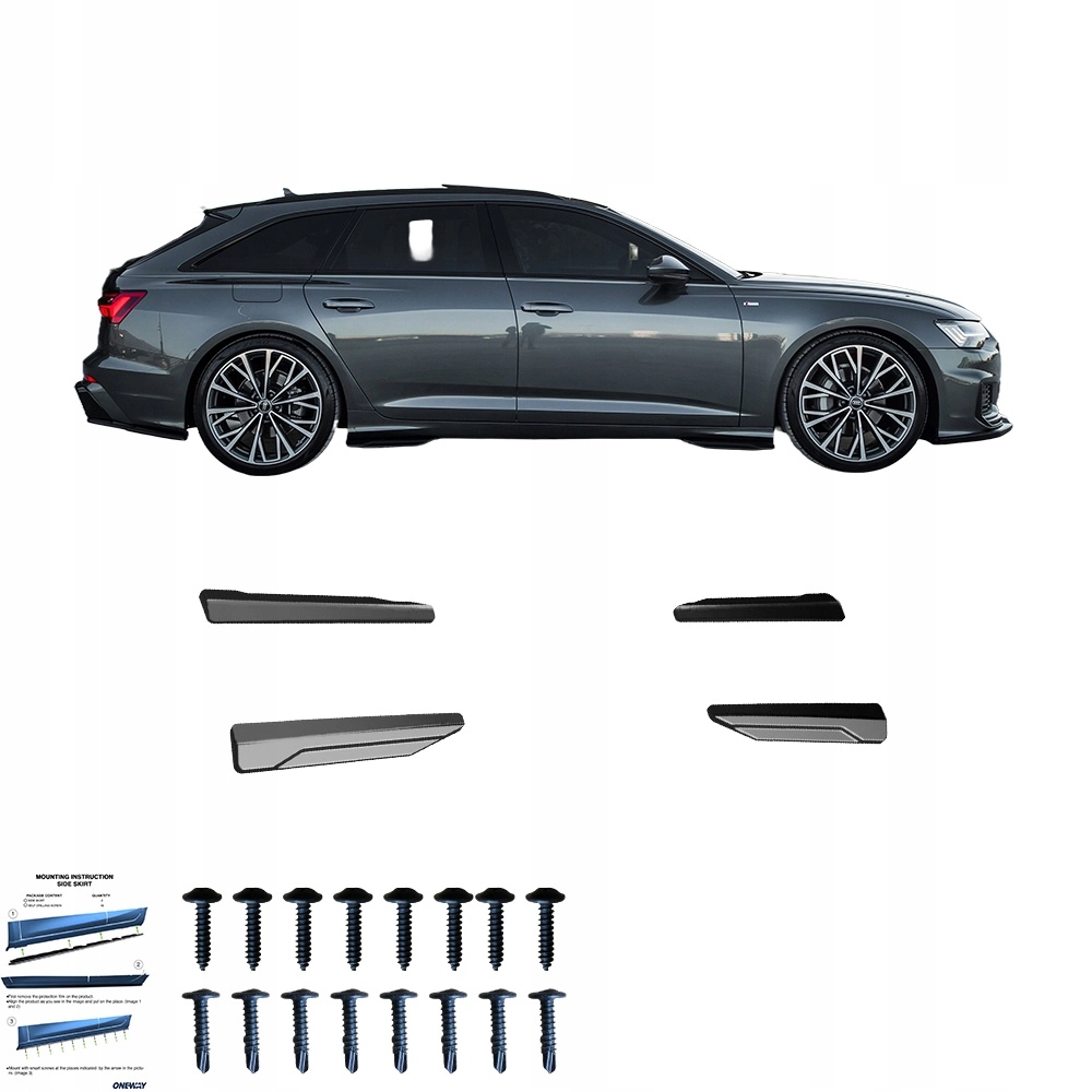 Бічні пороги для AUDI A6 C8 (4A) Sedan 2018- (глянцевий чорний) S-line/S6