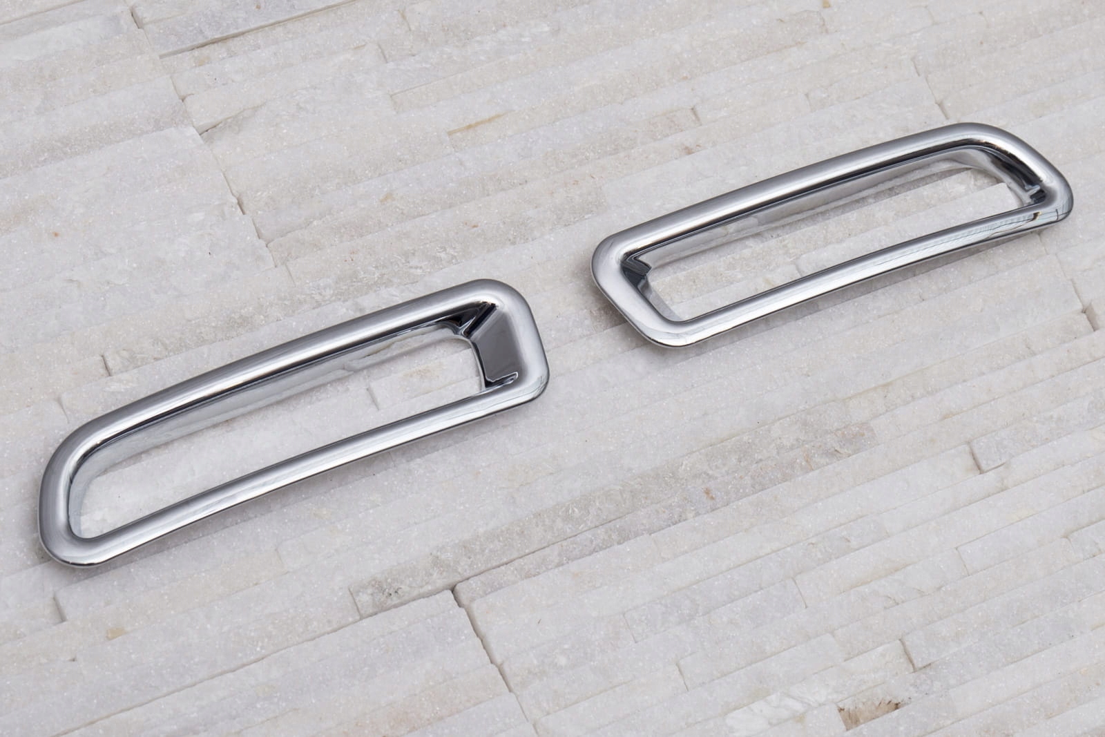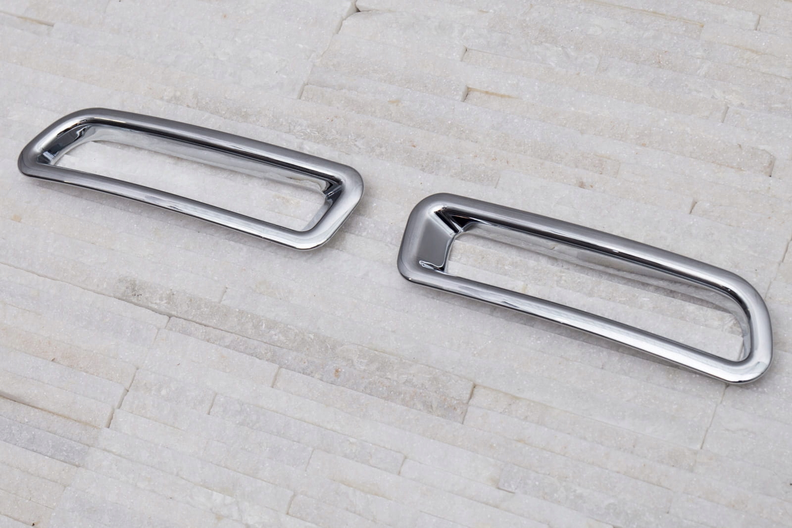 Виріб виготовлено з високоякісного хромованого ABS-пластику. У комплект входить набір з двох накладок на відбивач заднього бампера.