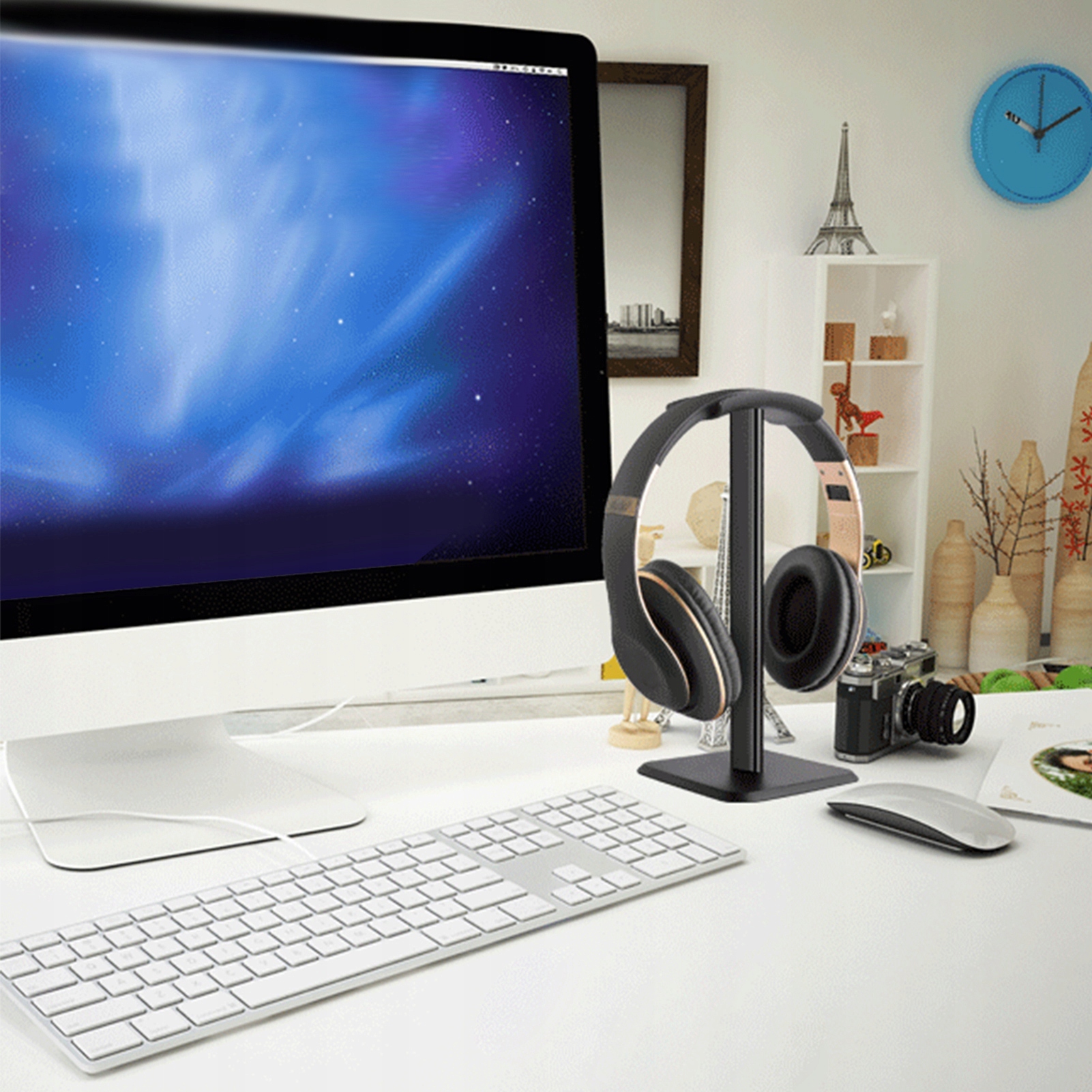 - Виготовлені з алюмінієвого сплаву + матеріал ABS, забезпечують безпечний і стабільний захист ваших навушників і підтримують порядок на вашому столі.